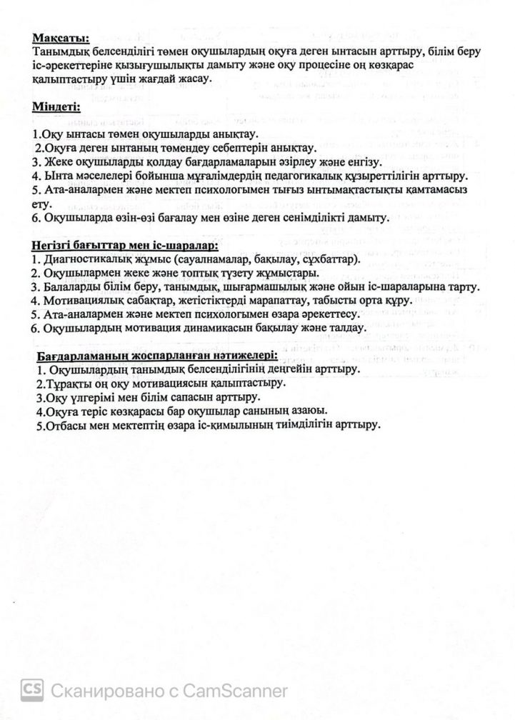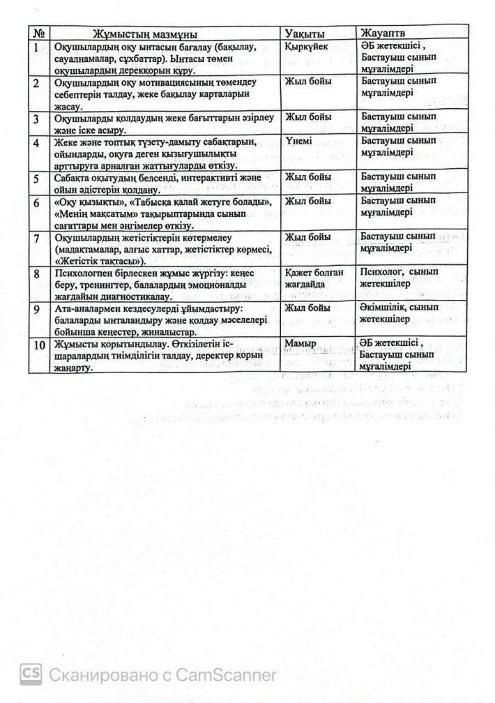 Бастауыш сынып мұғалімдерінің мотивациясы төмен балалармен жұмыс жоспары