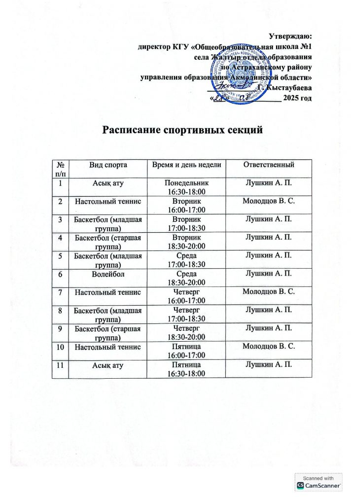 ҚОСЫМША САБАҚТАР КЕСТЕСІ