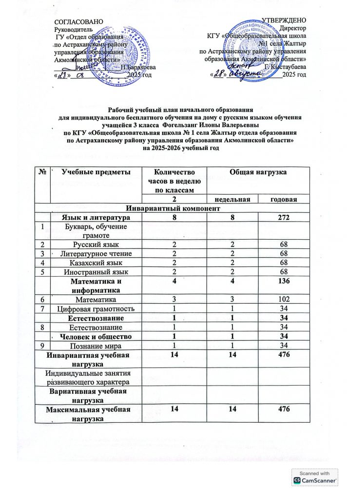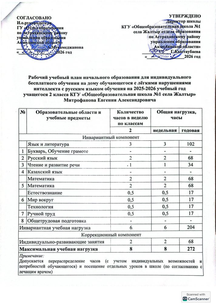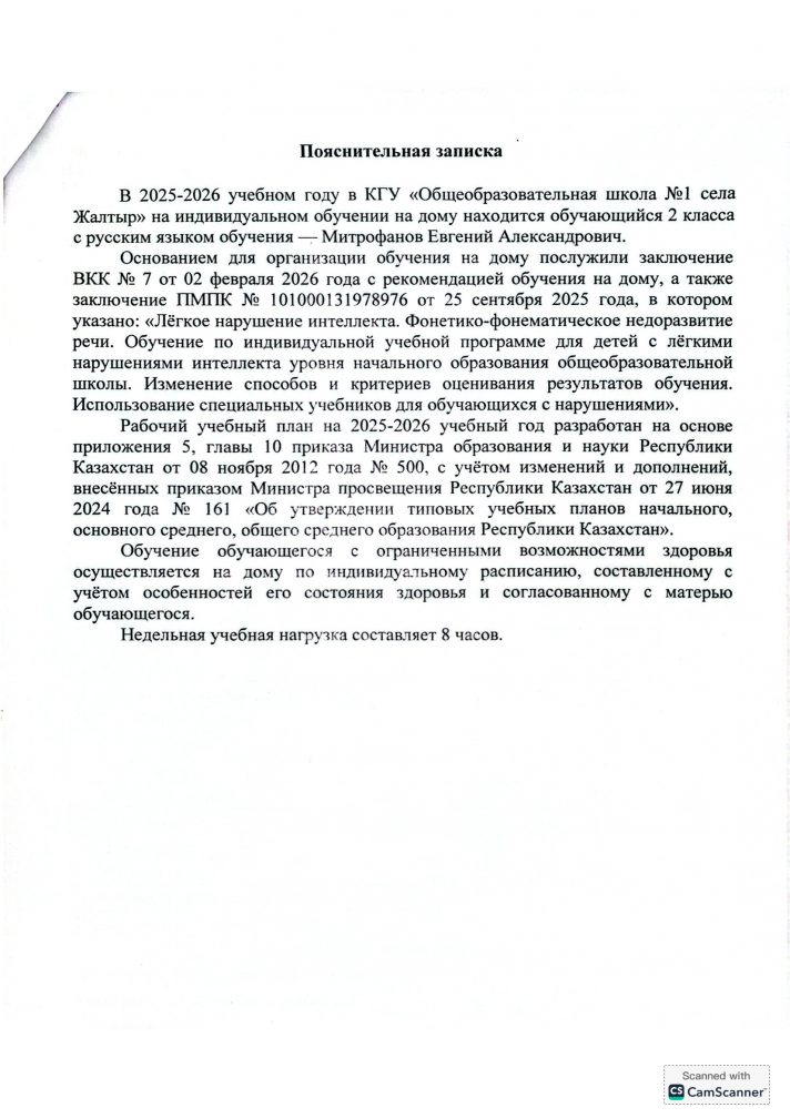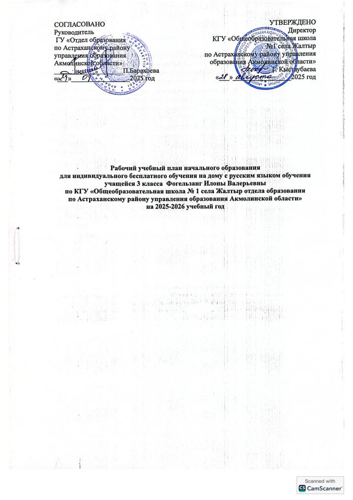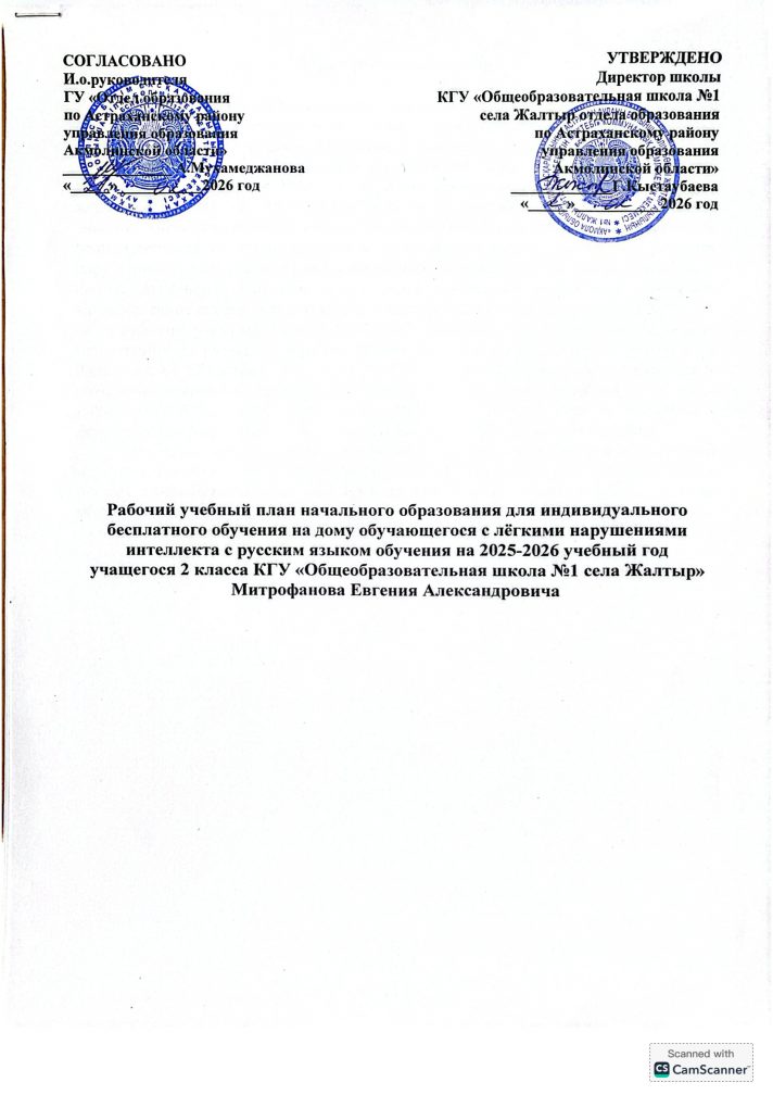 2025-2026 оқу жылына арналған орыс тілінде жеке тегін үйде оқытуға арналған Бастауыш білім берудің жұмыс жоспары