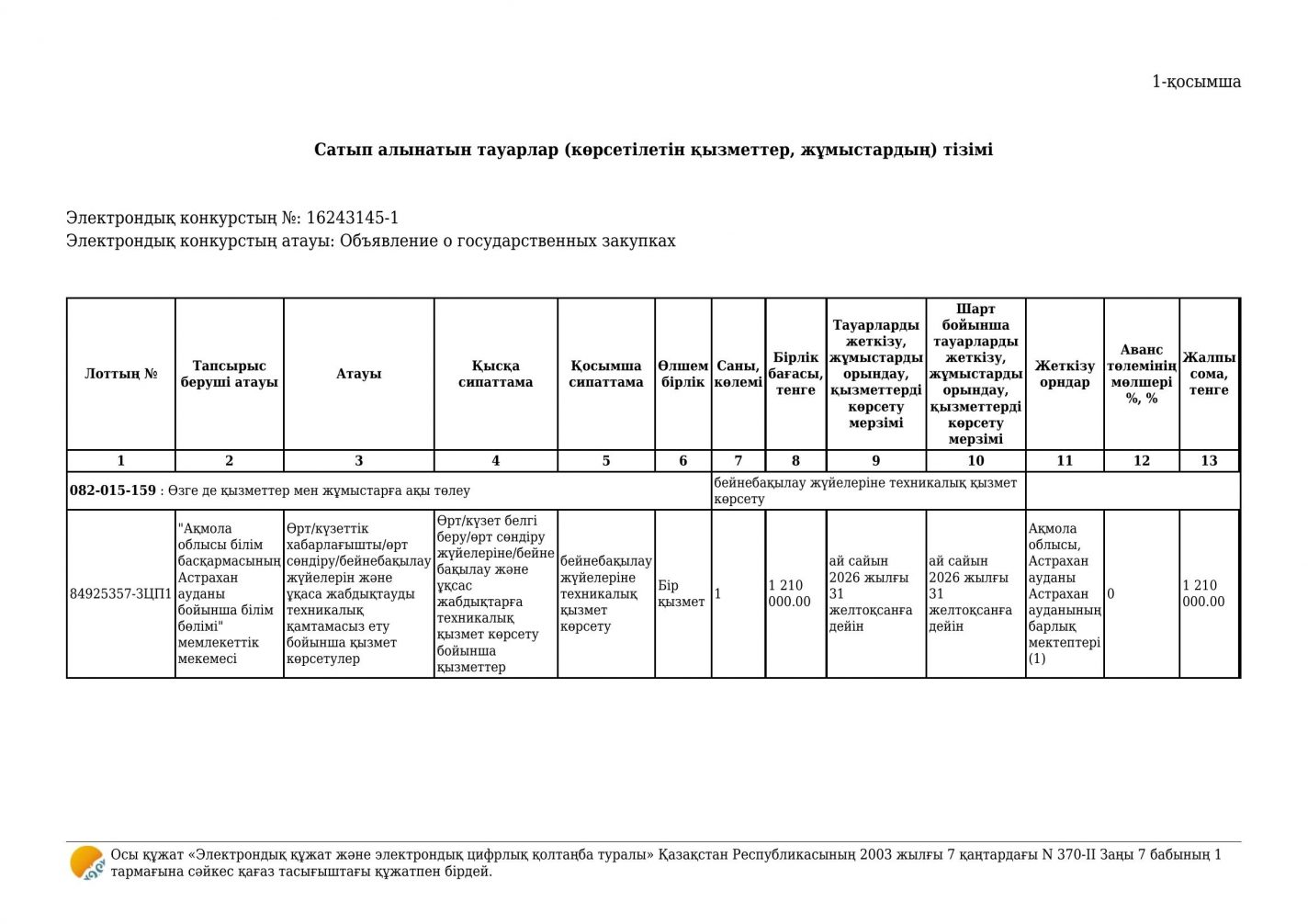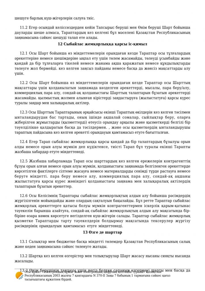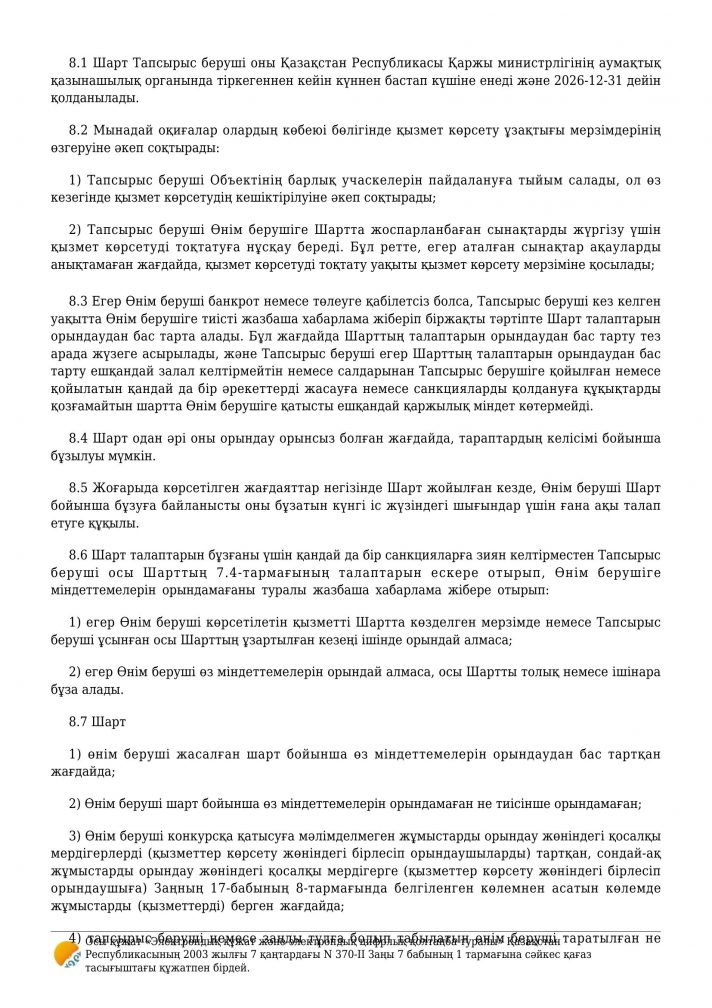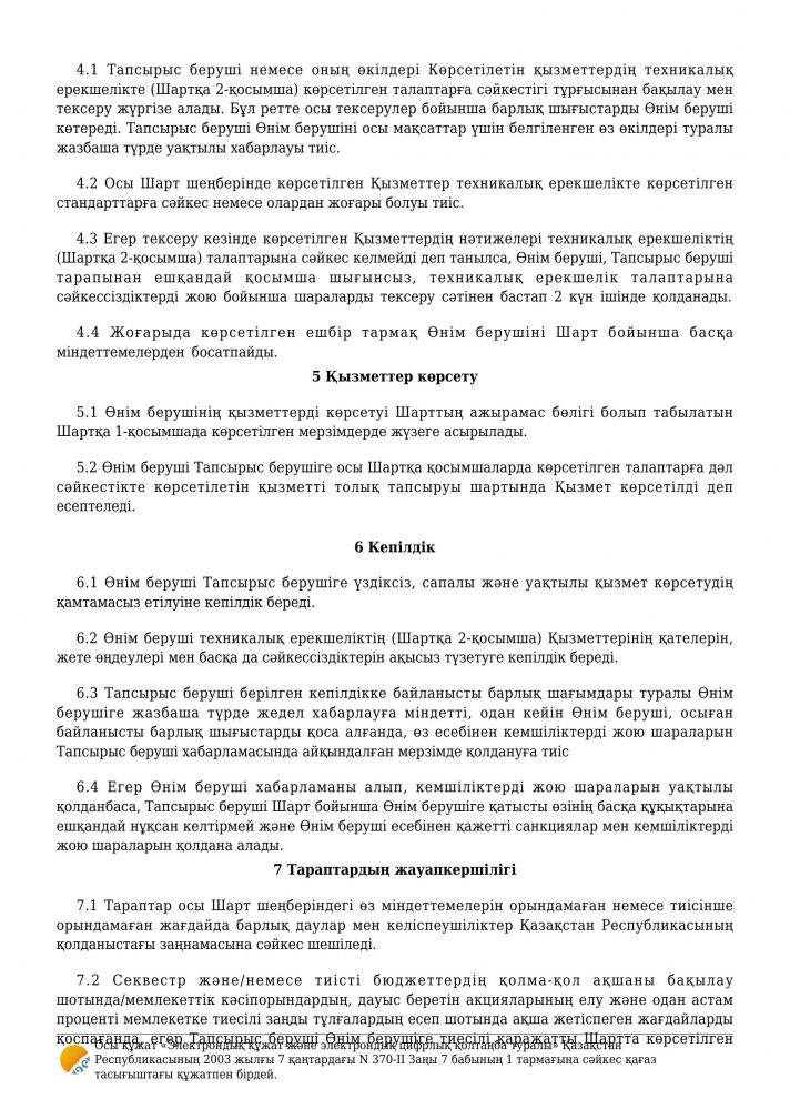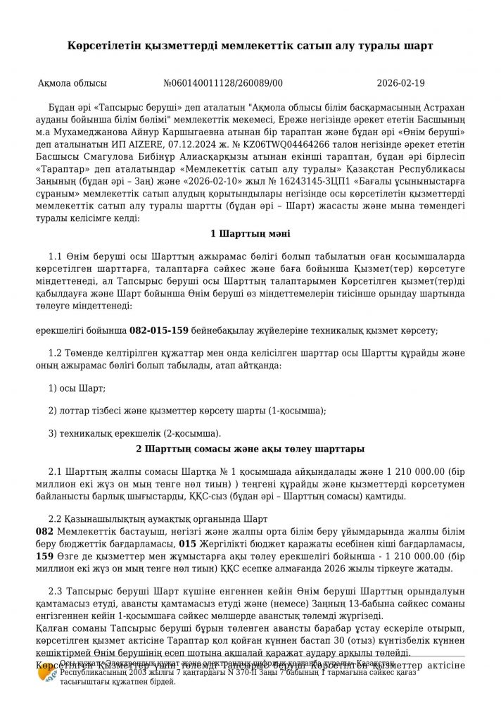 Бейнебақылау жүйесіне техникалық қызмет көрсету шарты