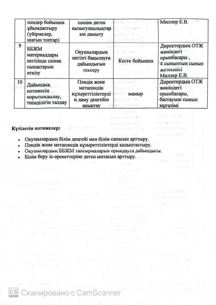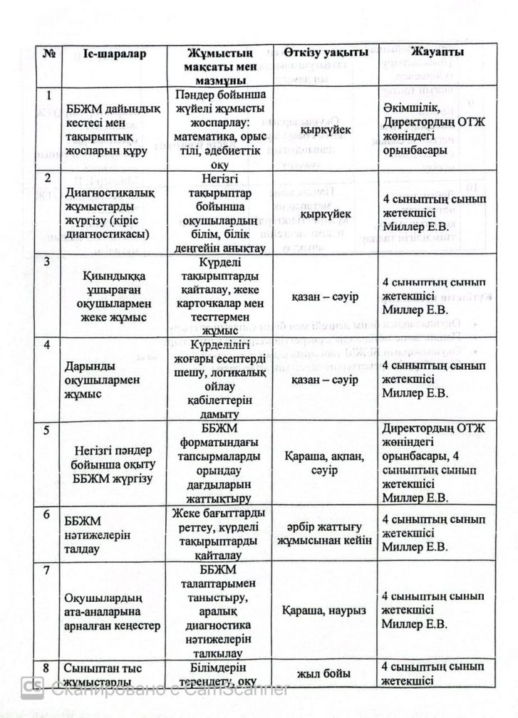 4-сынып оқушыларының ББЖМ дайындау және өткізу жөніндегі іс-шаралар жоспары