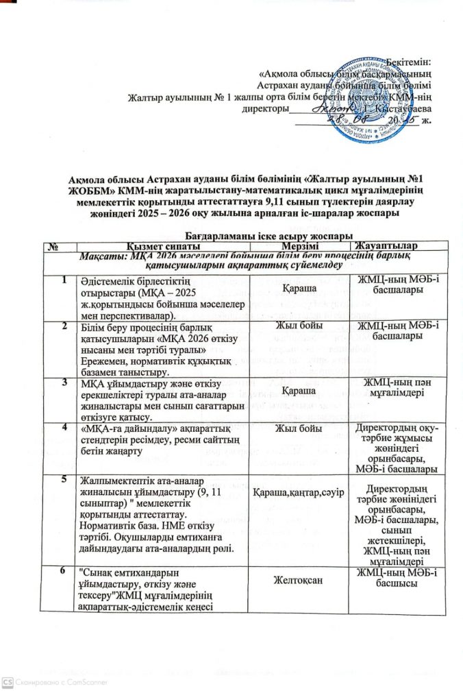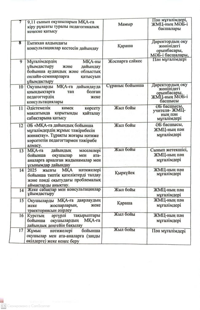 9,11 сынып түлектерін мемлекеттік қорытынды аттестаттауға дайындау жөніндегі іс-шаралар жоспары