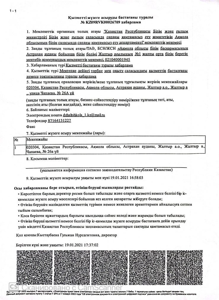 Коммунальное государственное учреждение «Общеобразовательная школа №1 села Жалтыр отдела образования по Астраханскому району управления образования Акмолинской области»