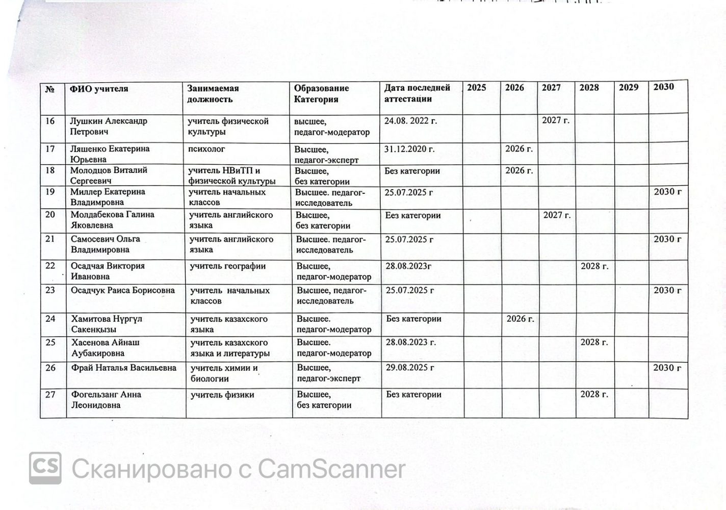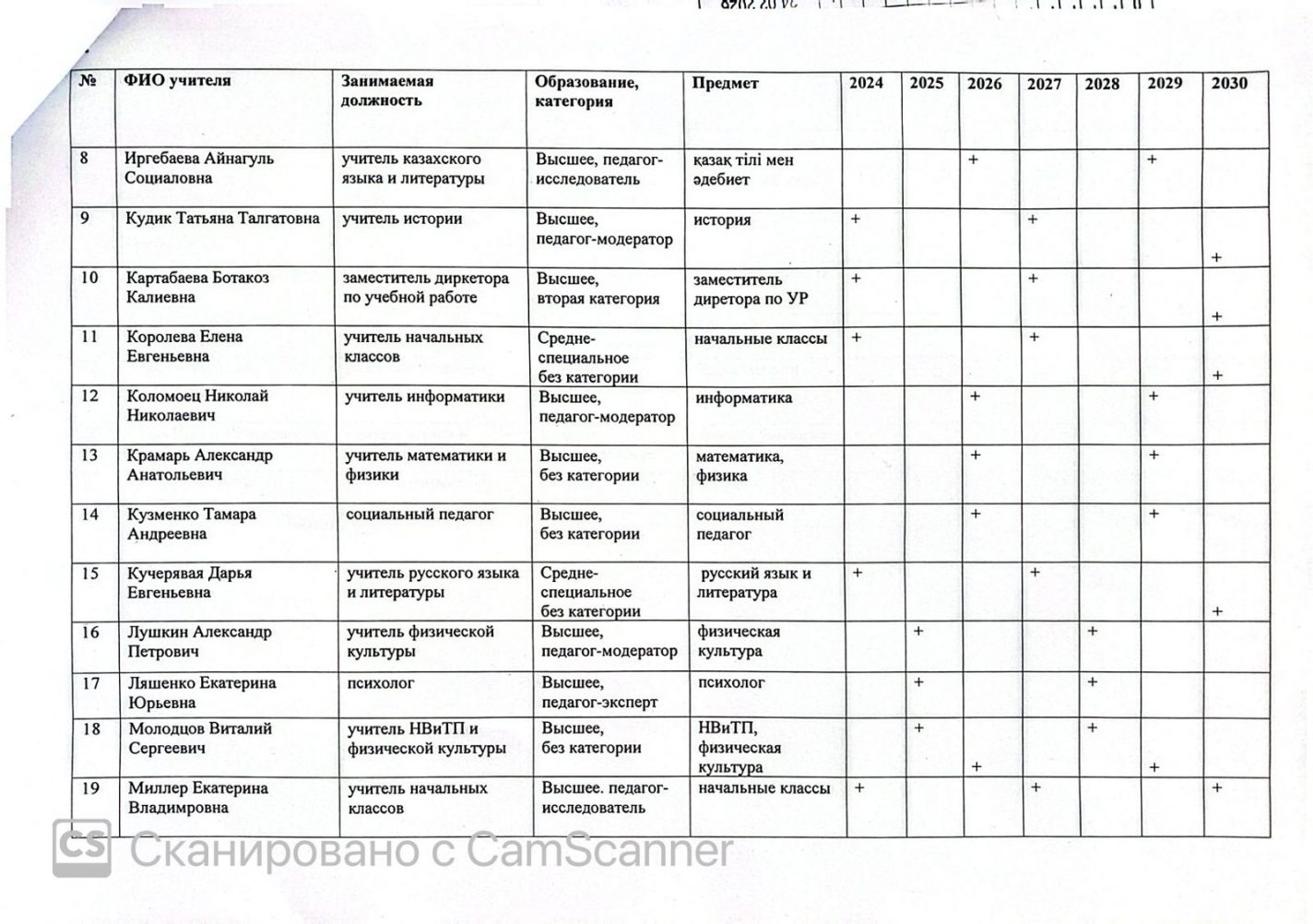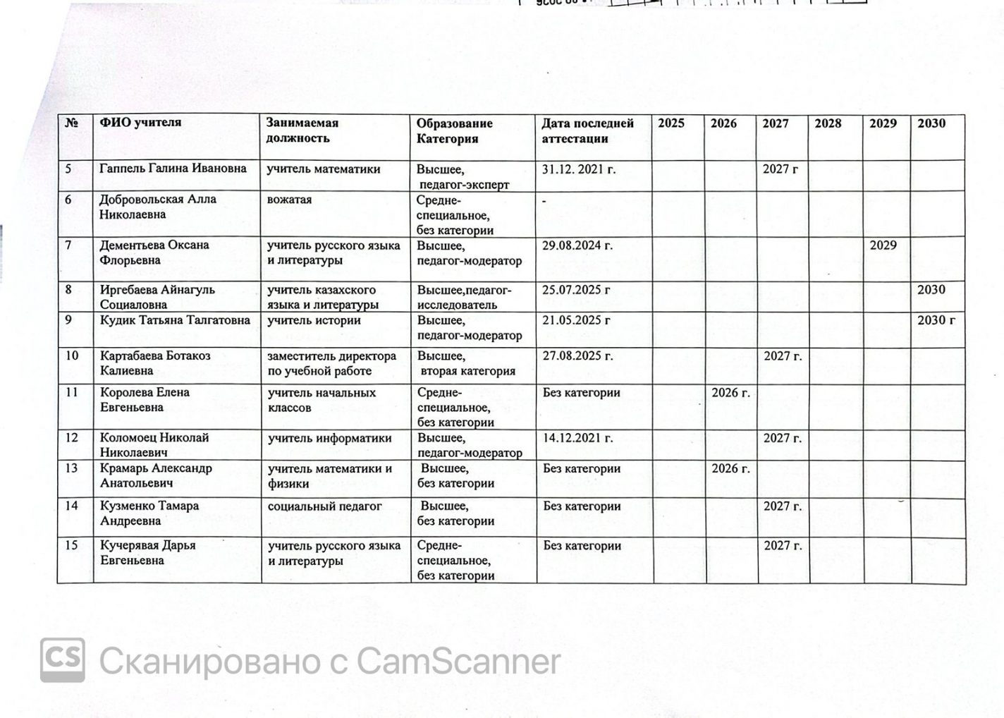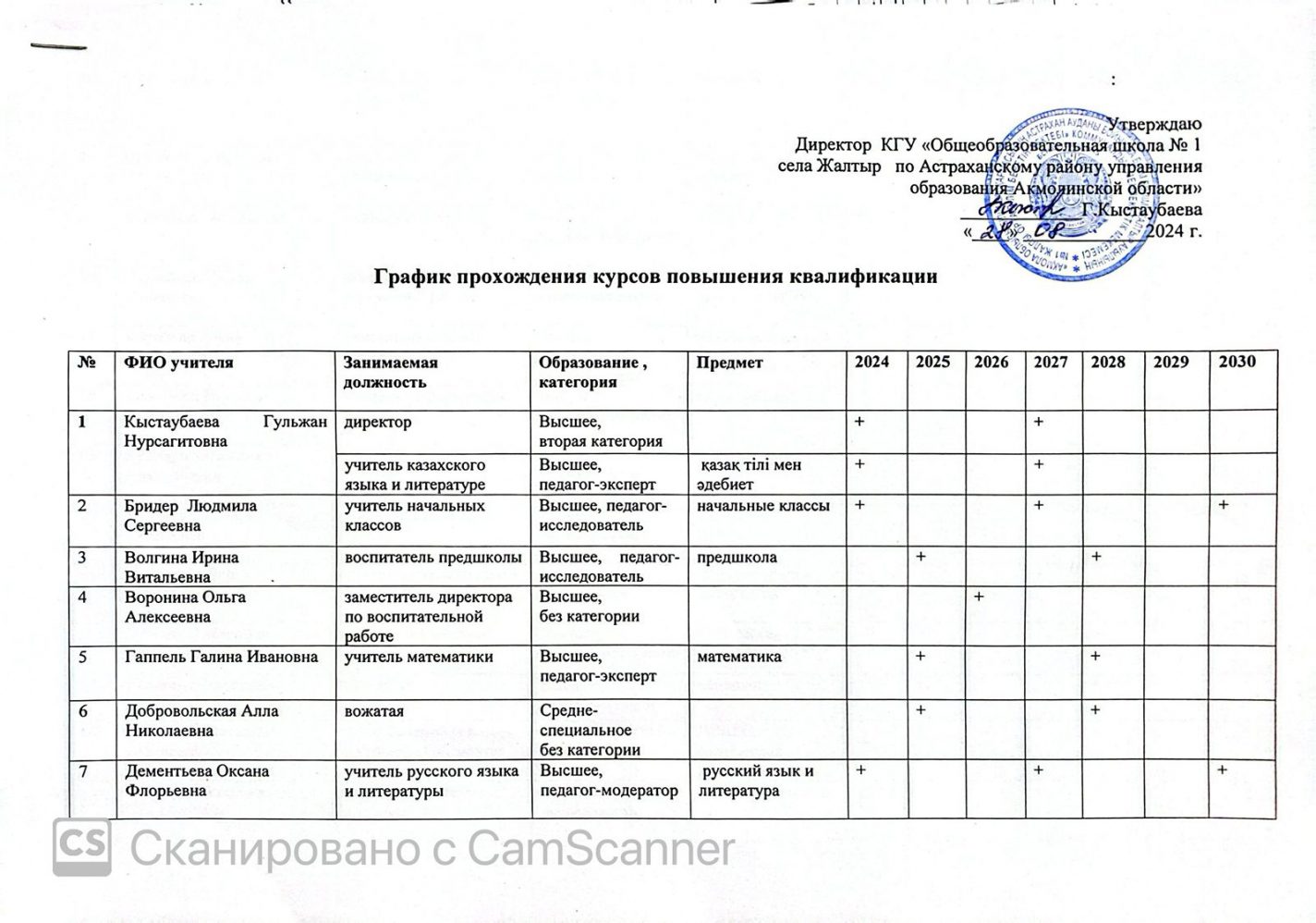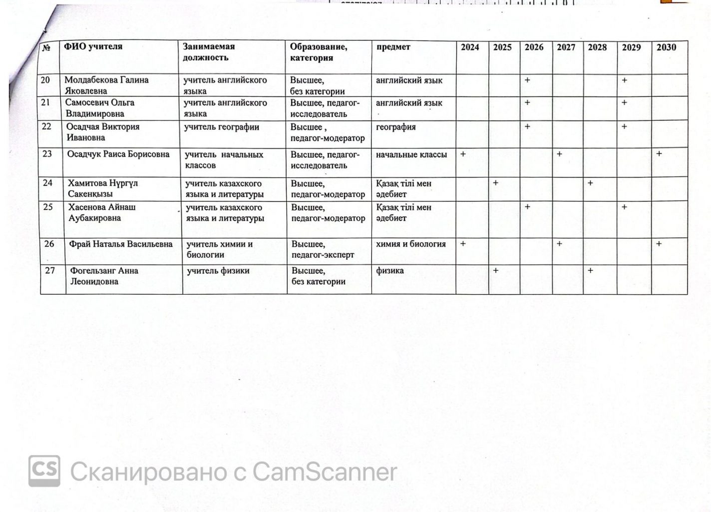 Басшы кадрлар мен педагогтердің біліктілігін арттыру жөніндегі мәліметтер