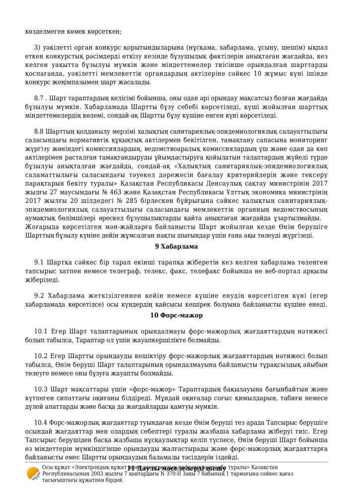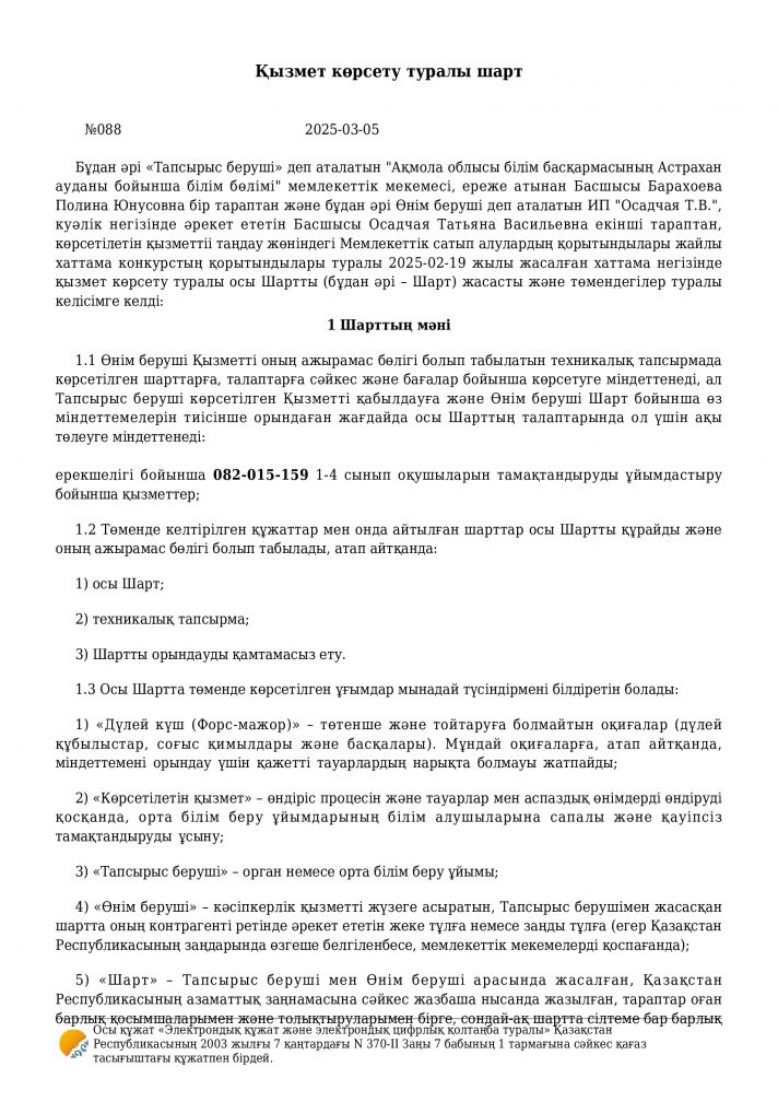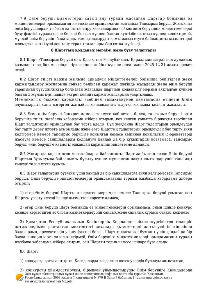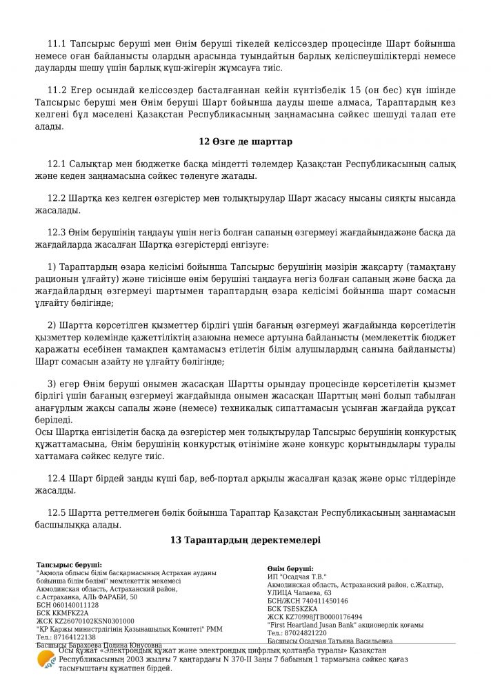 Санитариялық қағидаларға сәйкес білім алушыларды тамақпен қамтамасыз етуге арналған шарт
