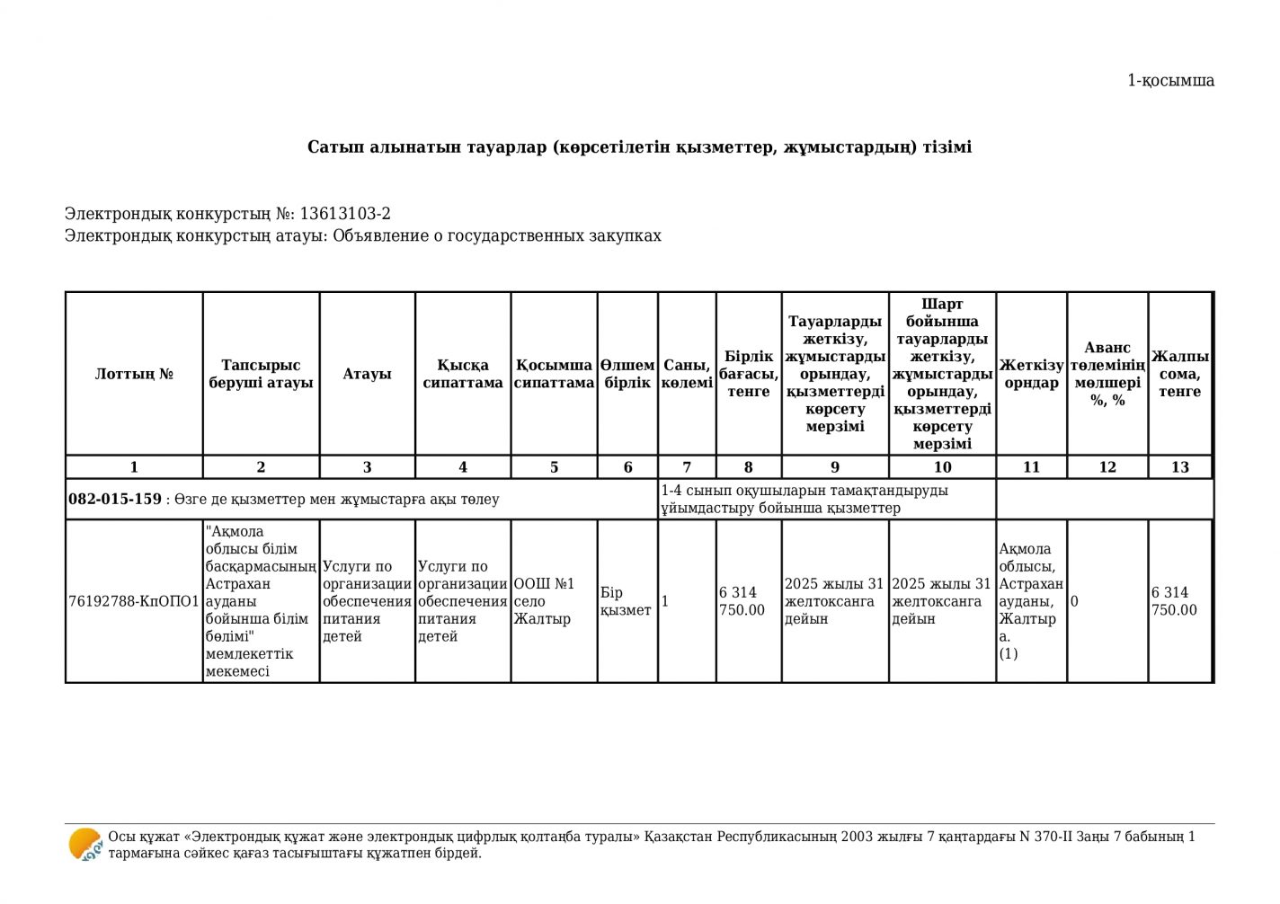 Коммунальное государственное учреждение «Общеобразовательная школа №1 села Жалтыр отдела образования по Астраханскому району управления образования Акмолинской области»