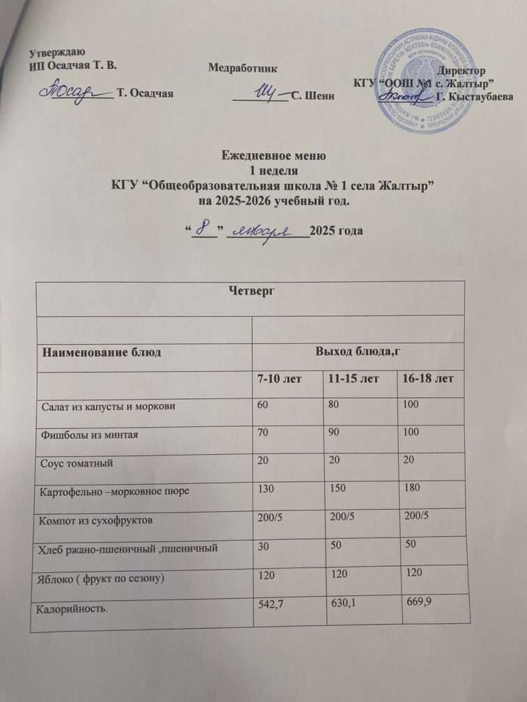 Коммунальное государственное учреждение «Общеобразовательная школа №1 села Жалтыр отдела образования по Астраханскому району управления образования Акмолинской области»