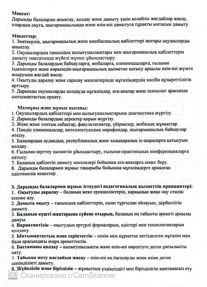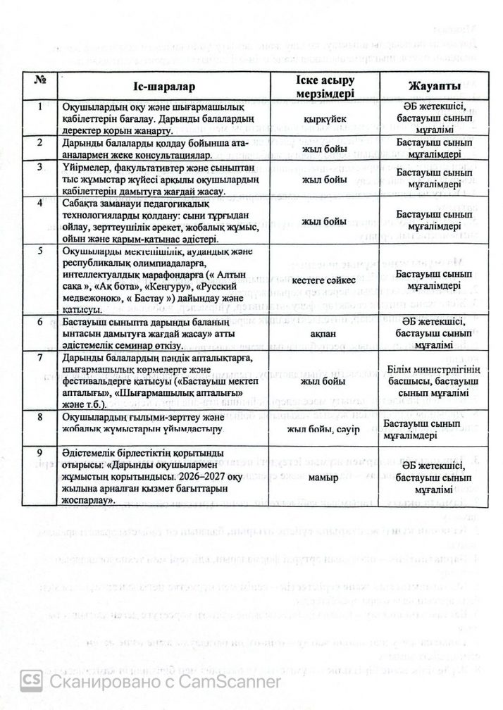 Дарынды балалармен бастауыш сынып мұғалімдерінің жұмыс жоспары