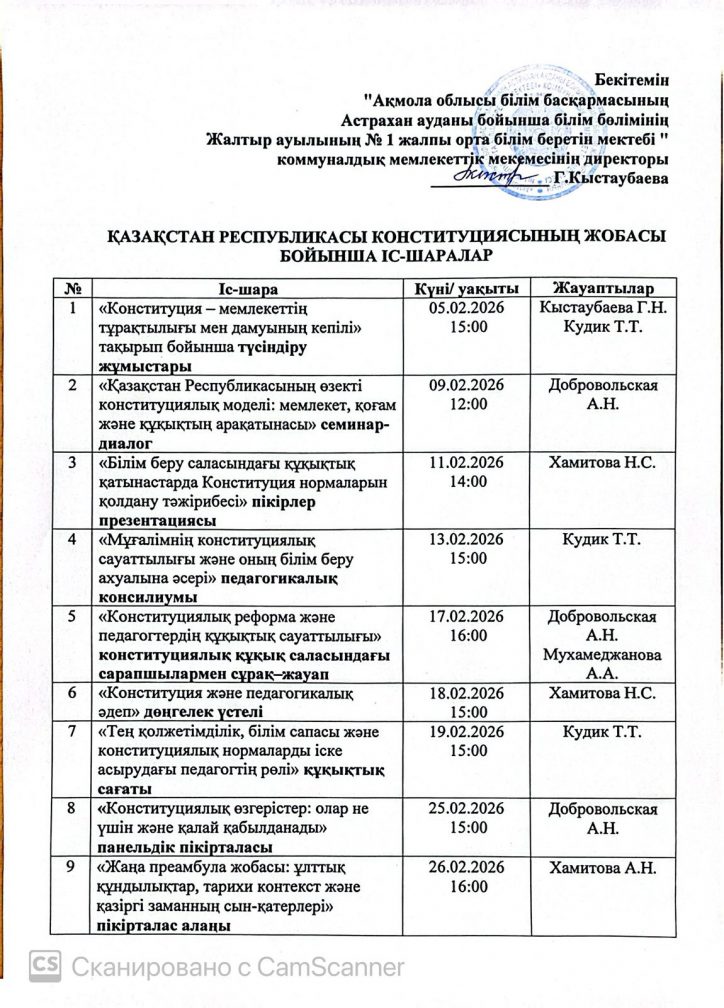 Қазақстан Республикасы Конституциясының жобасы бойынша іс-шаралар