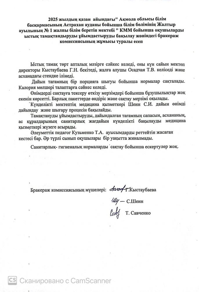 Бракераж комиссиясының 2025 жылғы қазан айындағы есебі