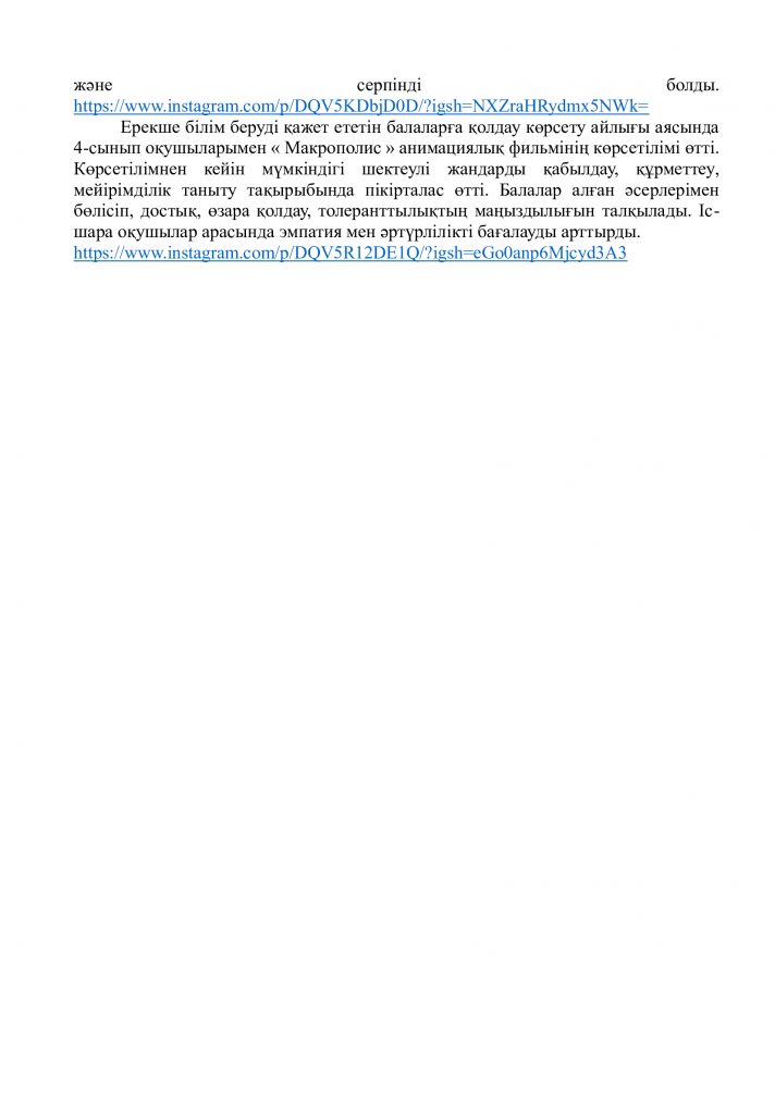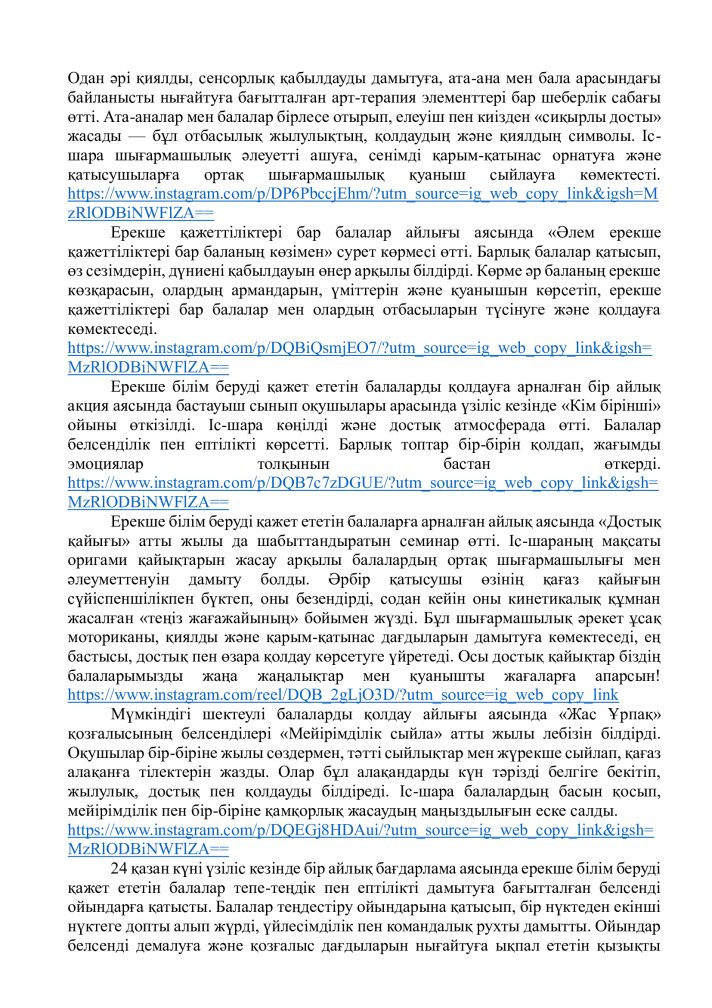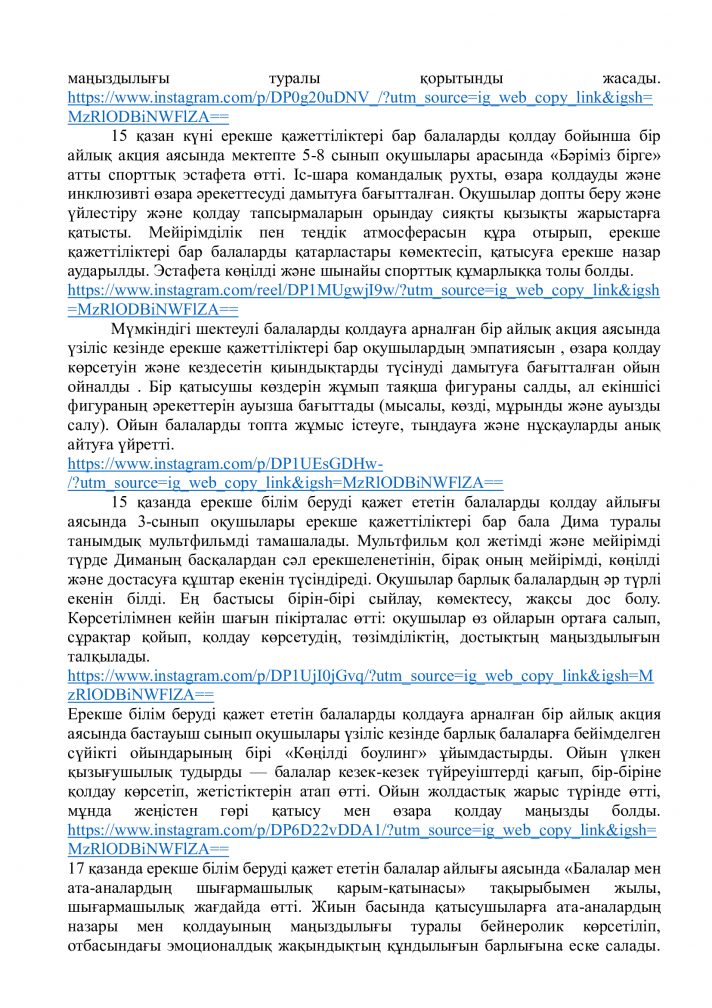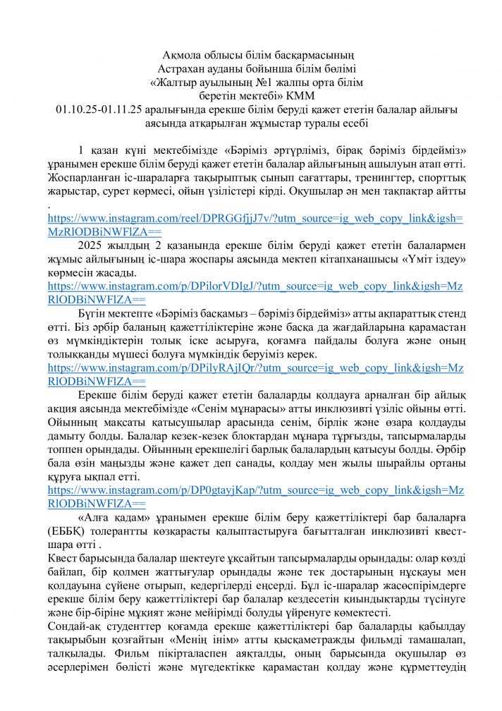 Ерекше білім беру қажеттіліктері бар балалар айлығы шеңберінде атқарылған жұмыстар туралы есеп