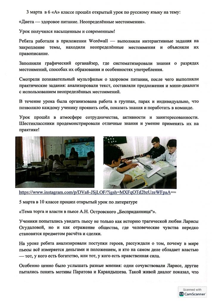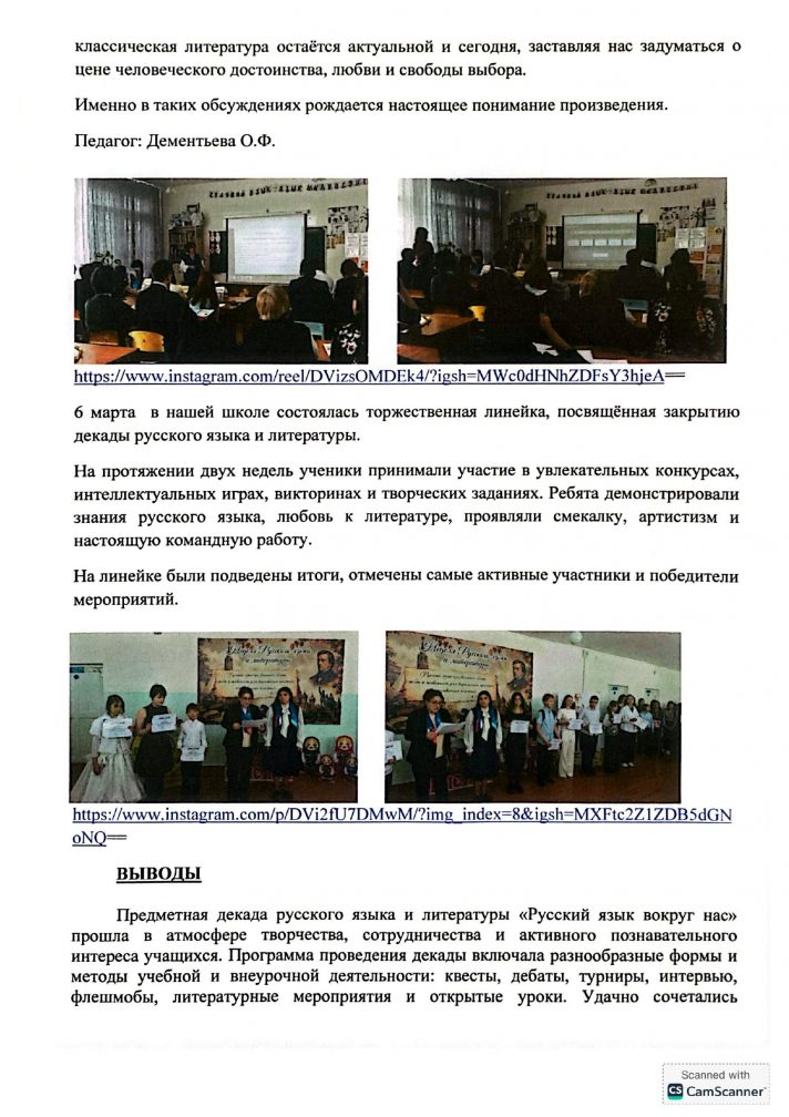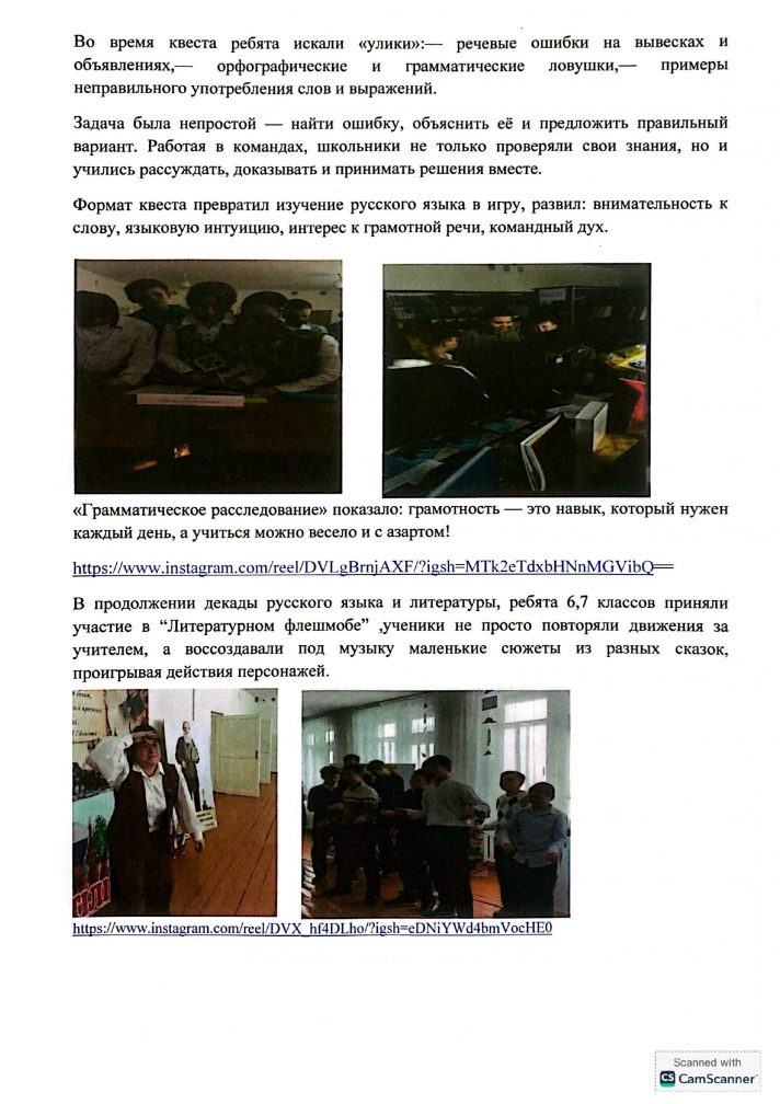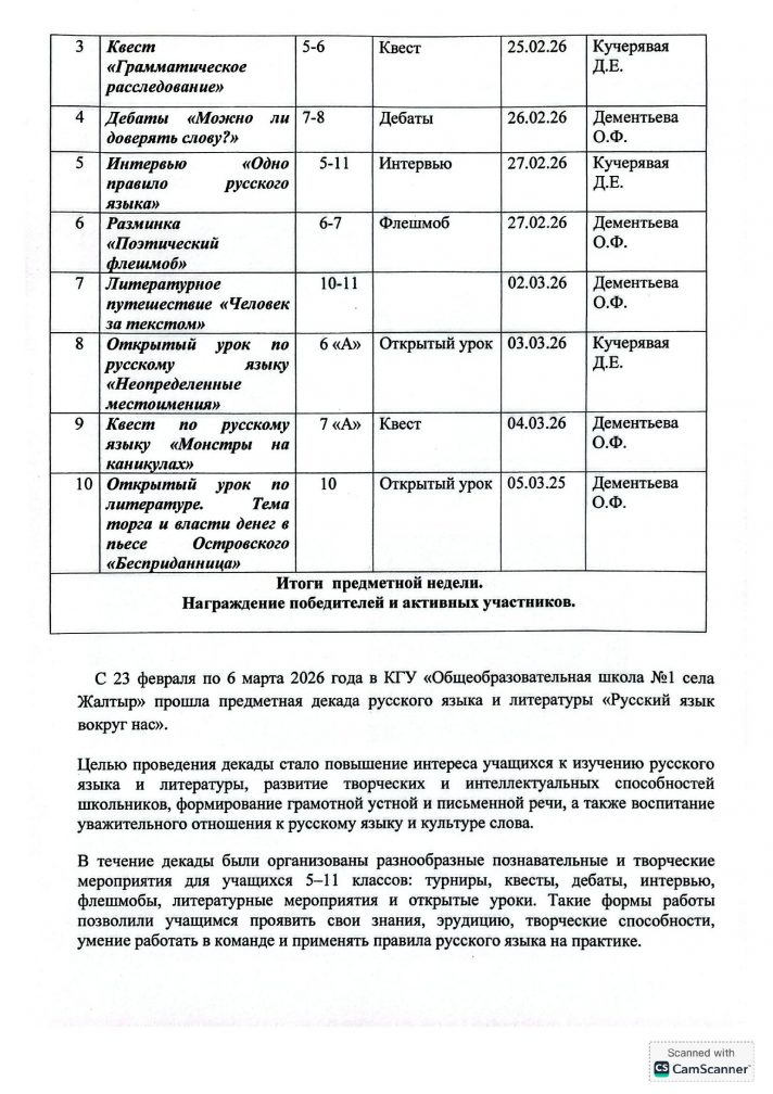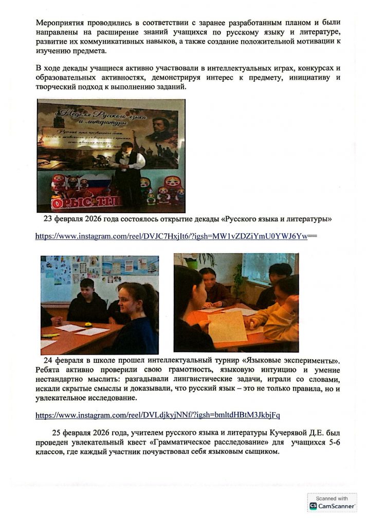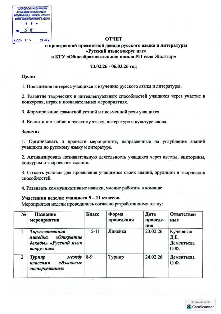 Орыс тілі мен әдебиетінің онкүндігі туралы есеп