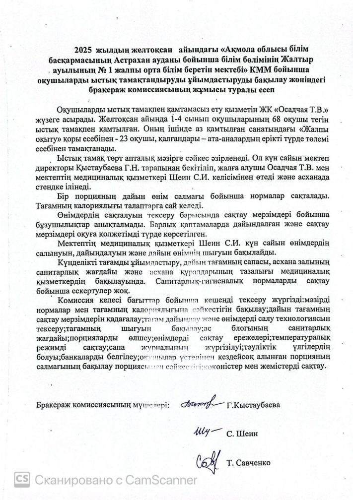 Бракераж комиссиясының 2025 жылғы желтоқсандағы жұмысы туралы есеп