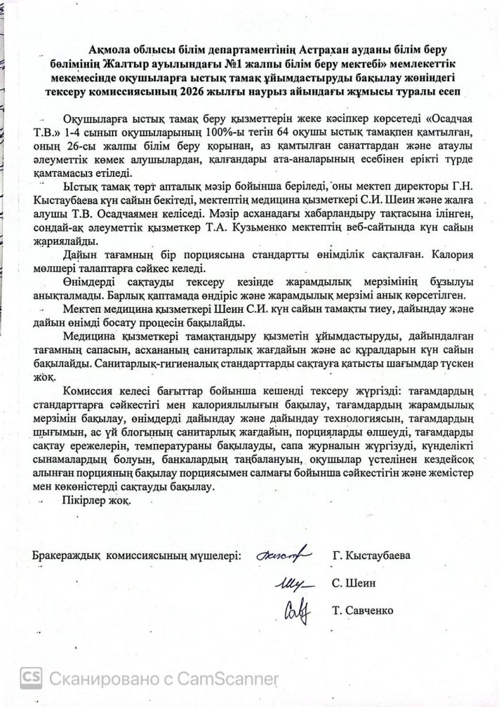 Бракераж комиссиясының 2026 жылғы наурыздағы жұмысы туралы есеп