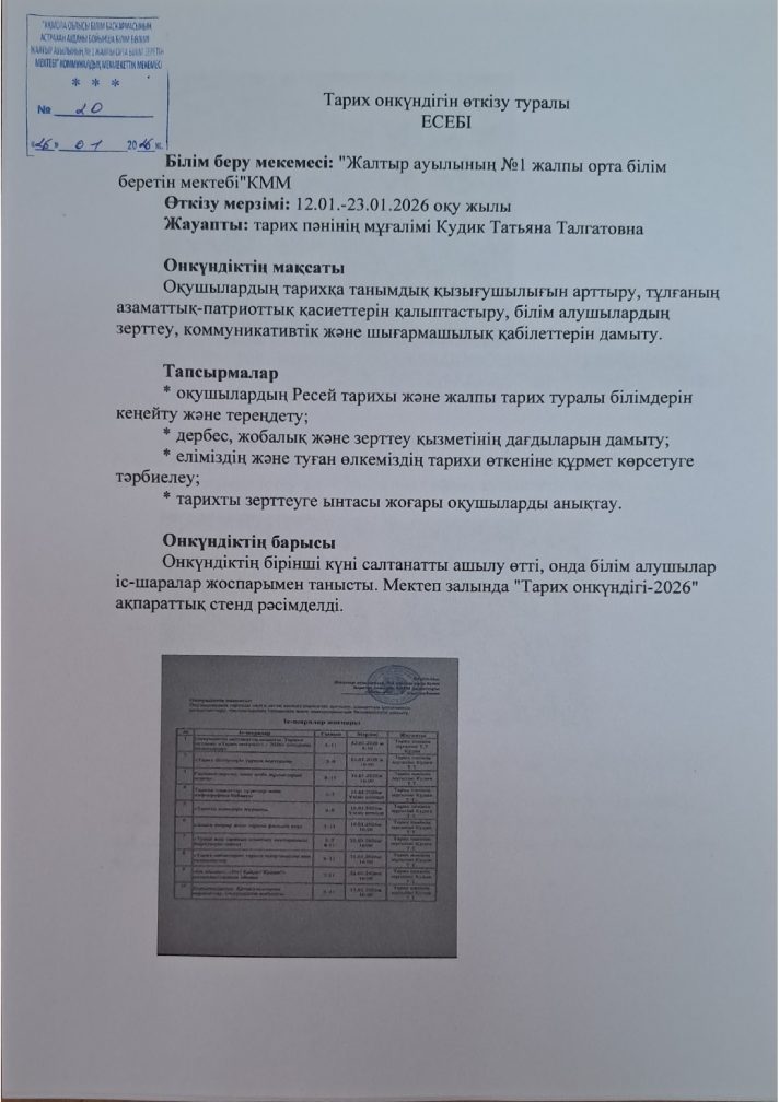 Коммунальное государственное учреждение «Общеобразовательная школа №1 села Жалтыр отдела образования по Астраханскому району управления образования Акмолинской области»