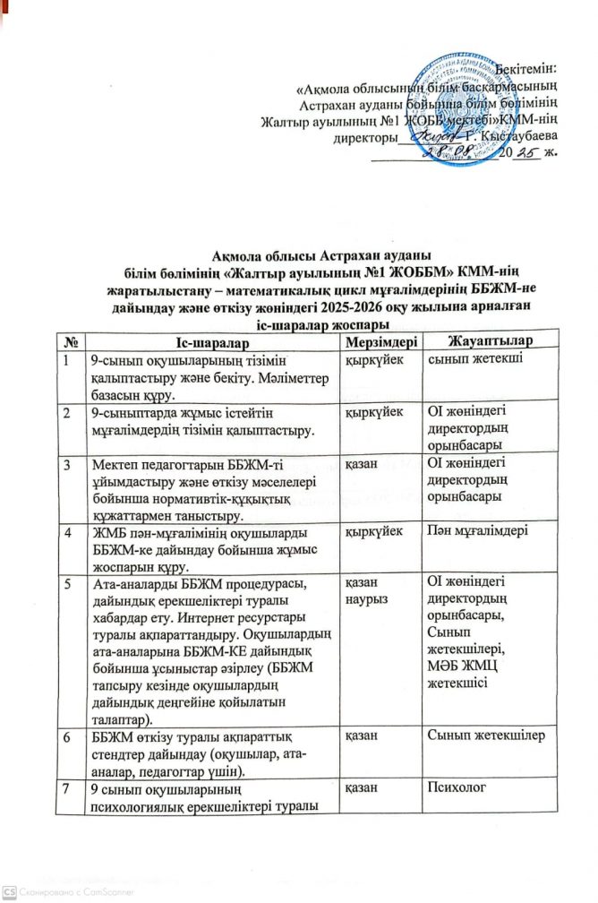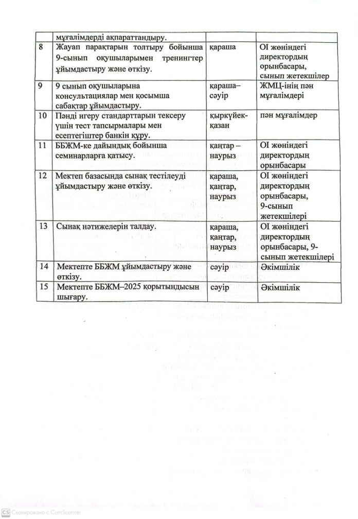 ББЖМ -не дайындау және өткізу жөніндегі іс-шаралар жоспары