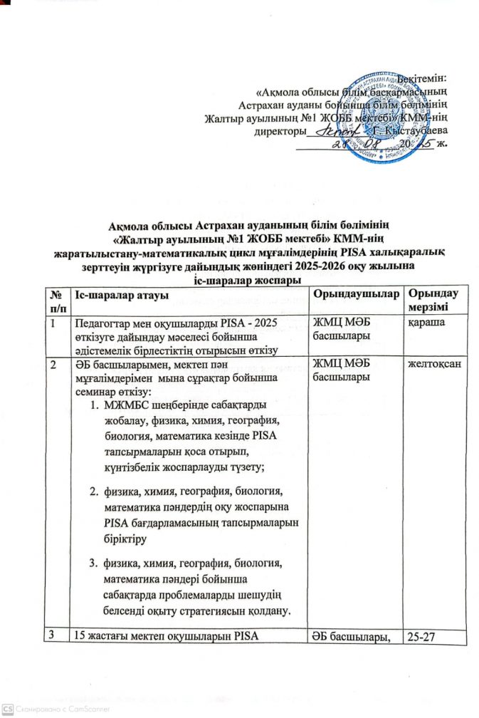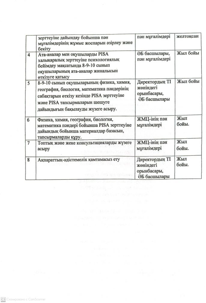 PISA халықаралық зерттеуін жүргізуге дайындық жөніндегі іс-шаралар жоспары