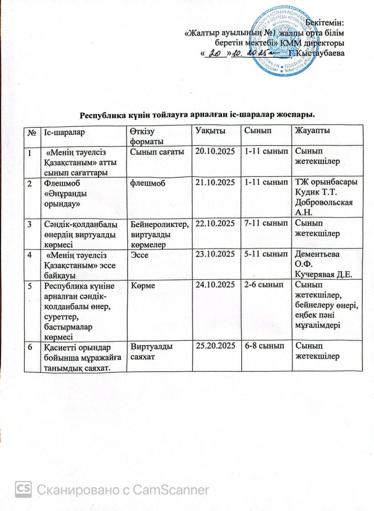 Республика күнін мерекелеу жөніндегі іс-шаралар жоспары