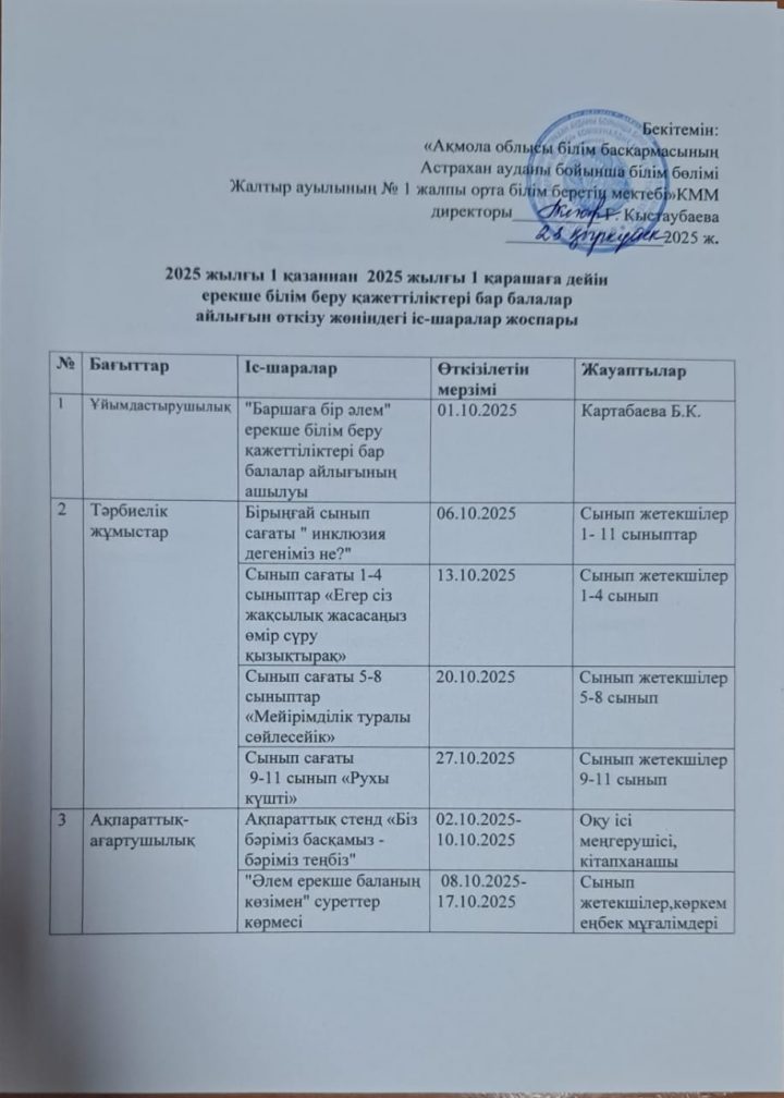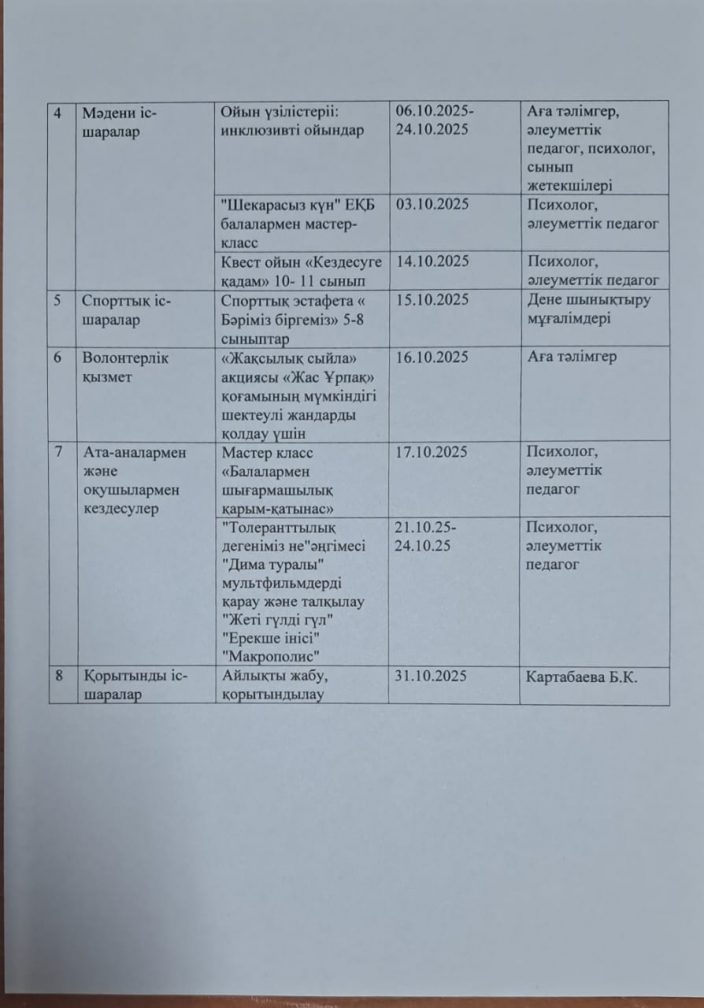 Ерекше білім беру қажеттіліктері бар балалар айлығын өткізу жөніндегі іс-шаралар жоспары