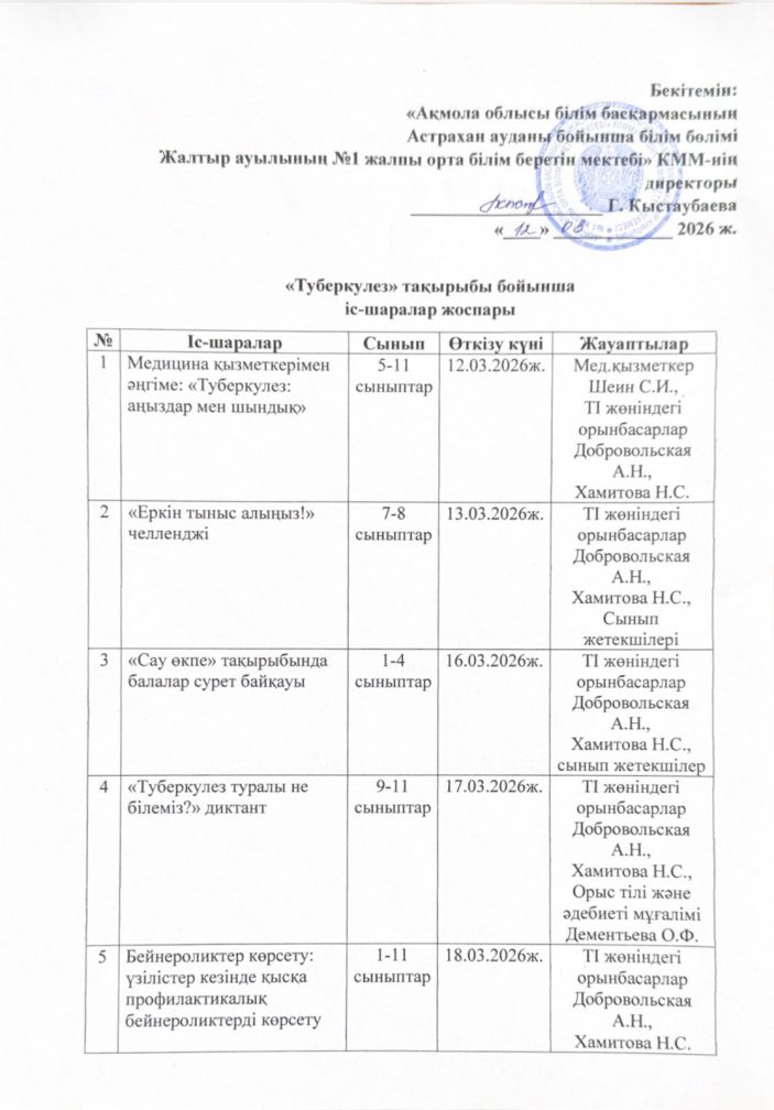 "Туберкулез" тақырыбы бойынша іс-шаралар жоспары