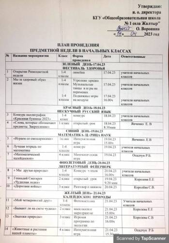 План недели в начальных классах