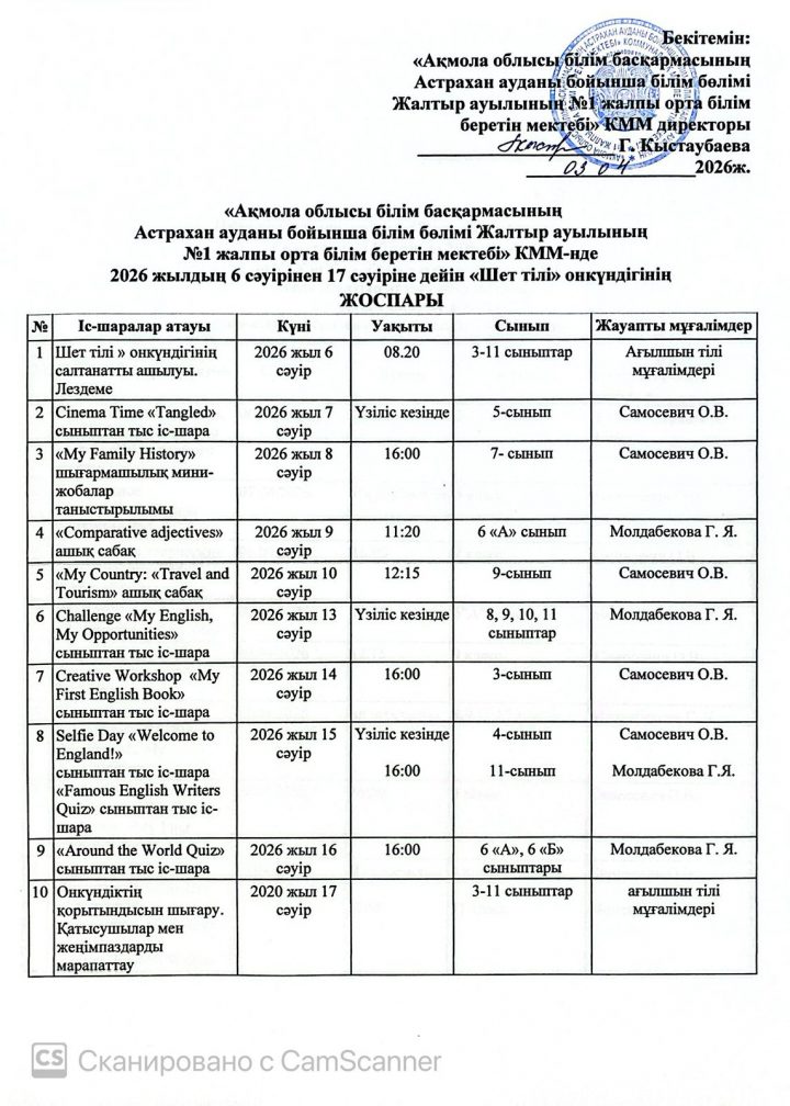 "Шет тілі"онкүндігін өткізу жоспары