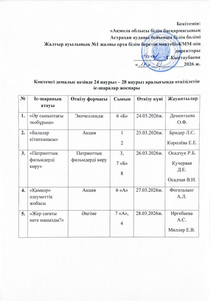Көктемгі демалыста іс-шаралар өткізу жоспары