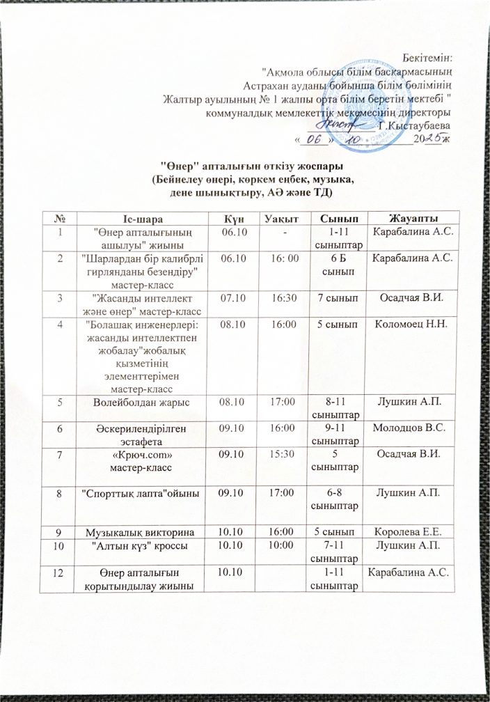 «Ақмола облысы Білім басқармасының Астрахан ауданы бойынша білім бөлімі Жалтыр аулының №1 жалпы білім беретін мектебі»  коммуналдық мемлекеттіқ мекемесі