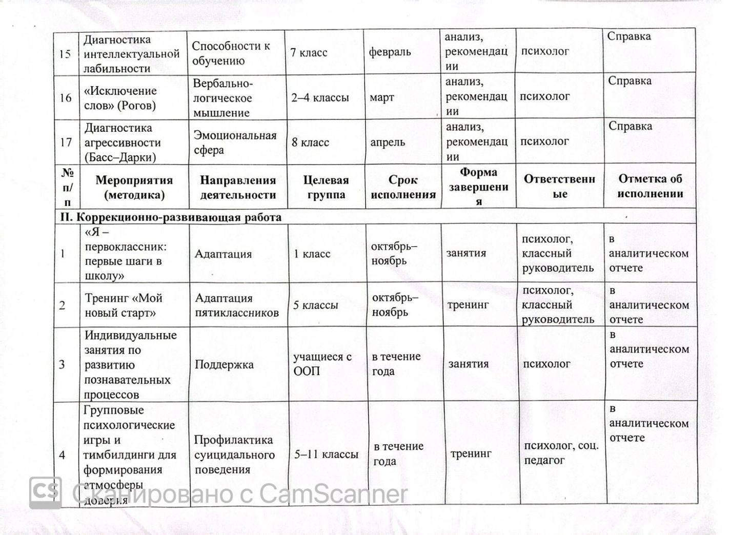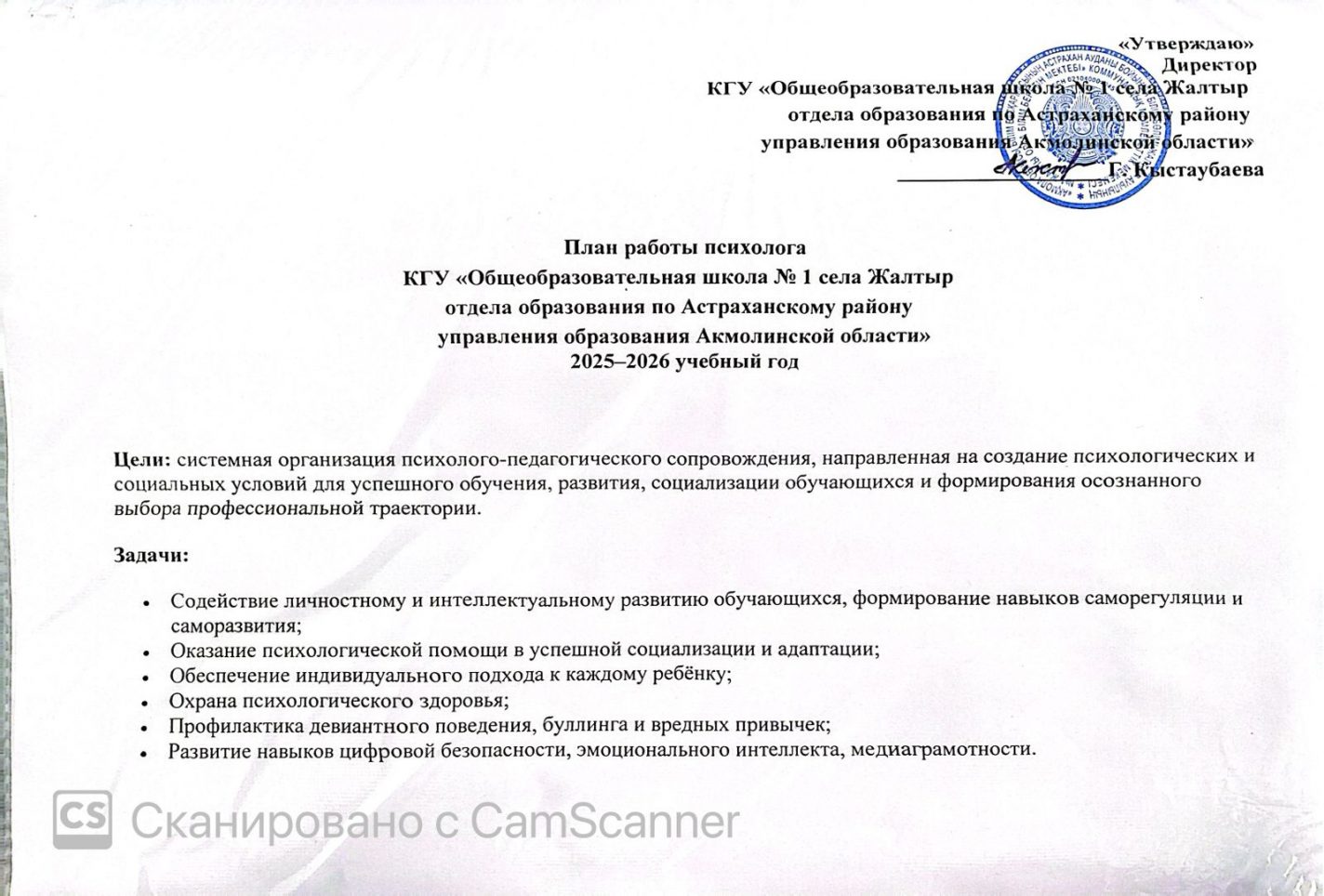Психологтың 2025-2026 оқу жылына арналған жұмыс жоспары