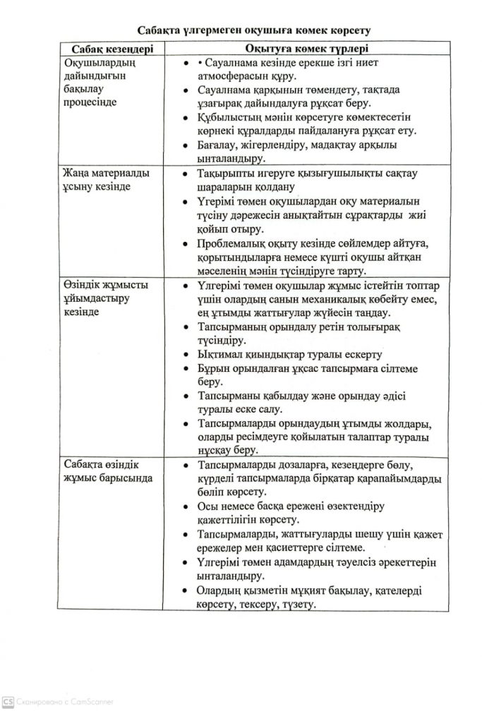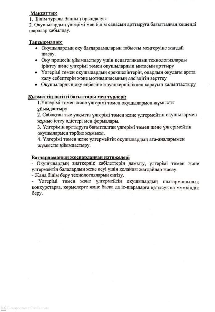 Мотивациясы төмен балалармен жұмыс жоспары