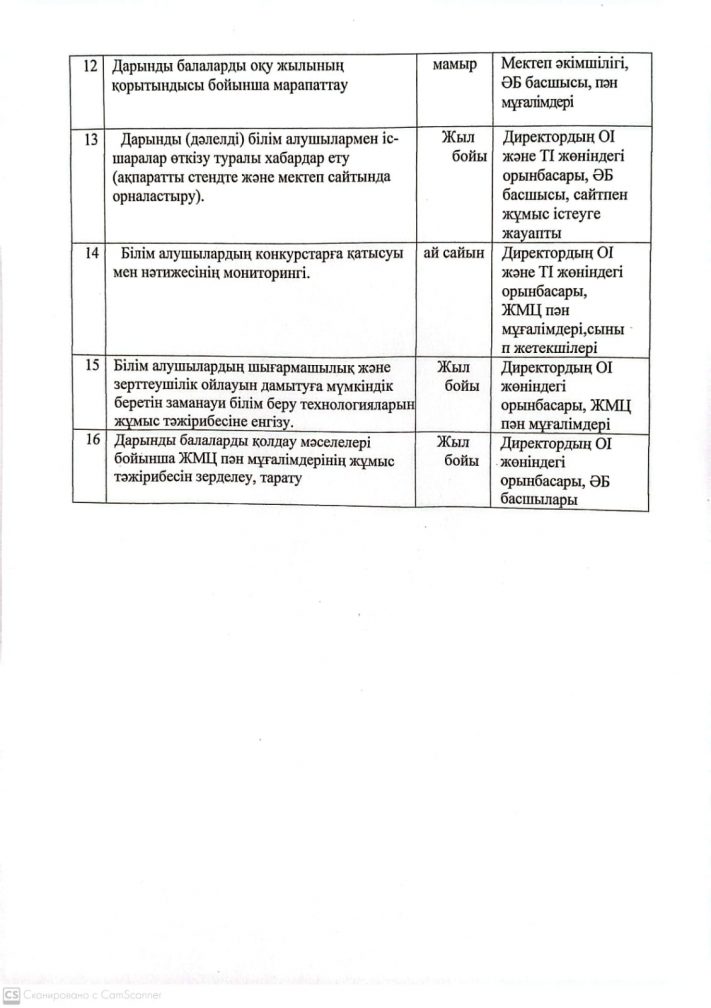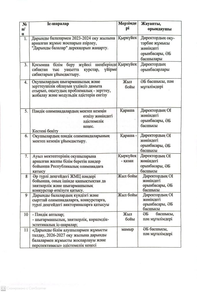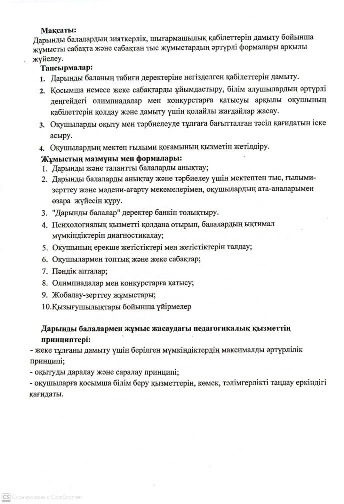 Дарынды балалармен жұмыс жоспары