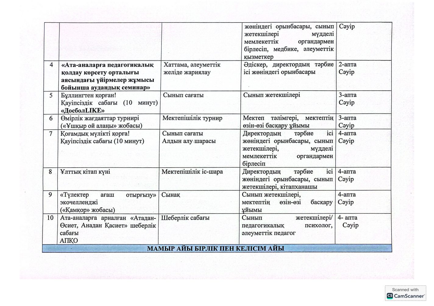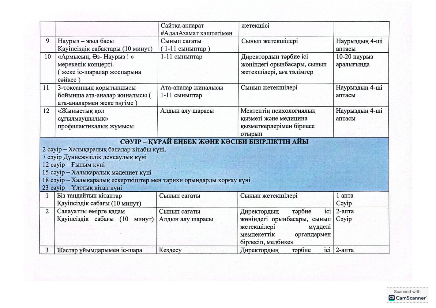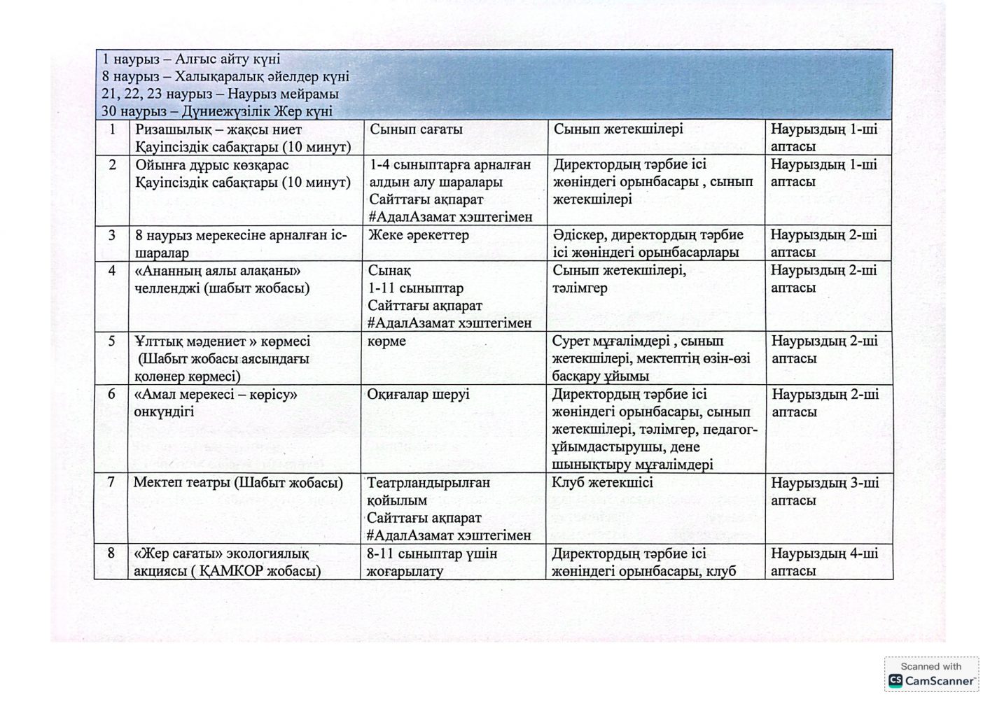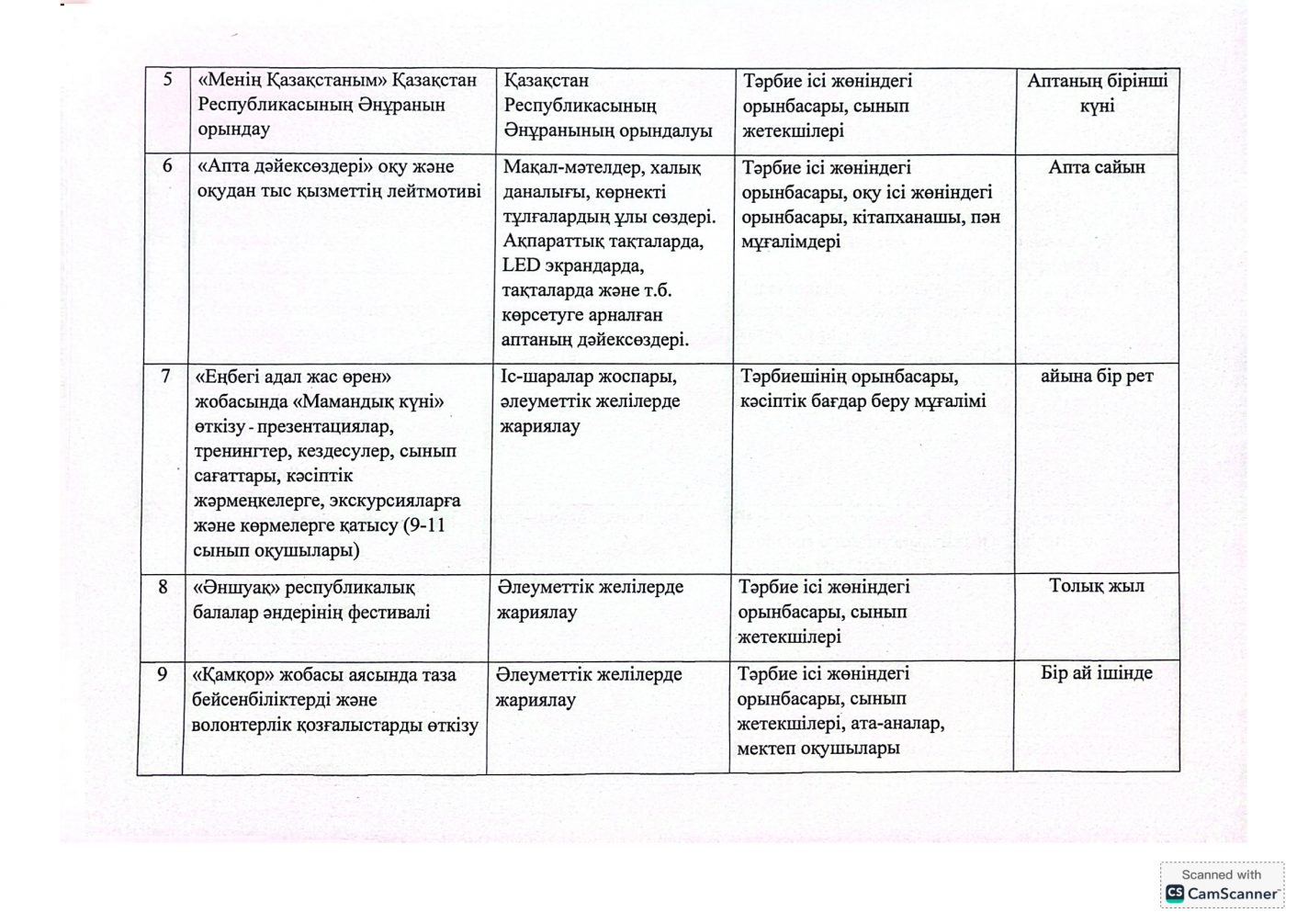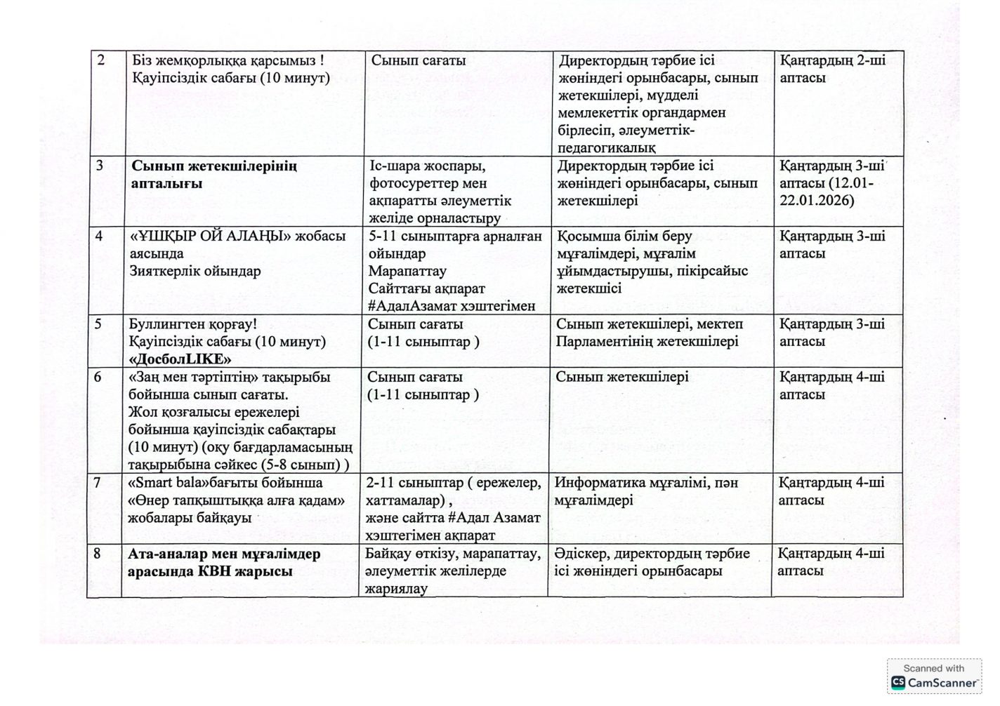 "Адал азамат" бірыңғай тәрбие бағдарламасын іске асыру бойынша 2025-2026 оқу жылына арналған тәрбие жұмысының жоспары