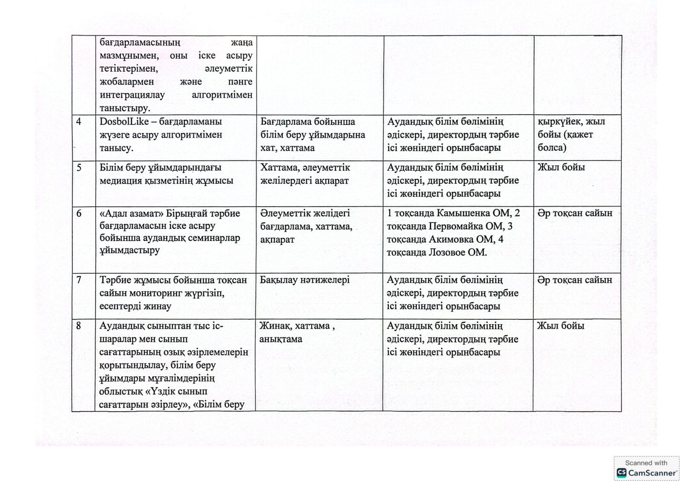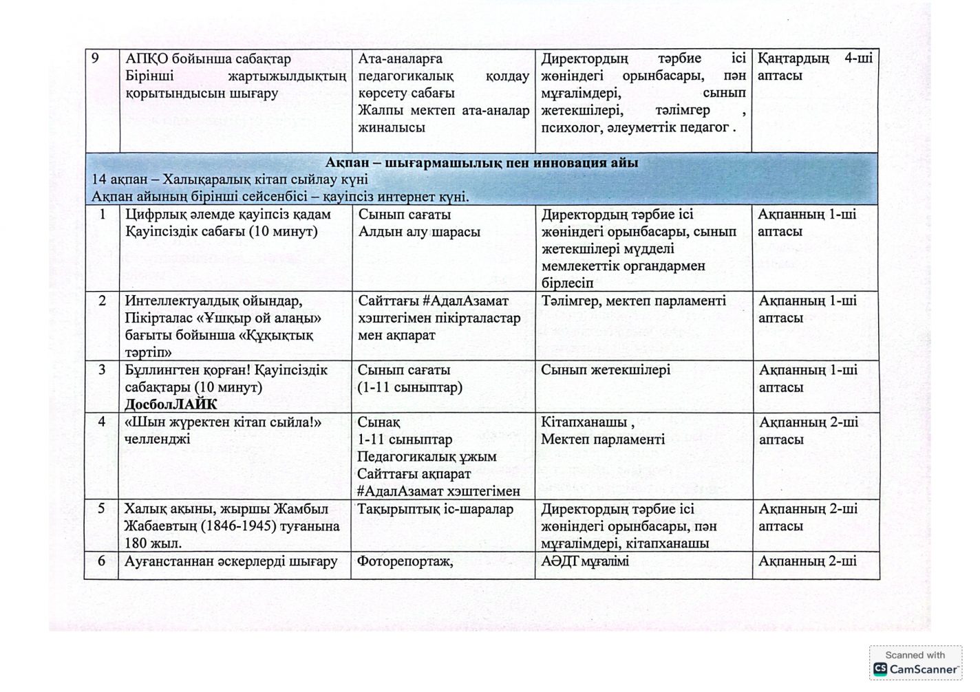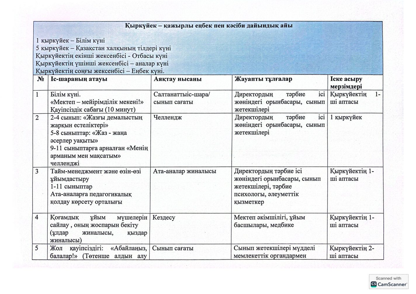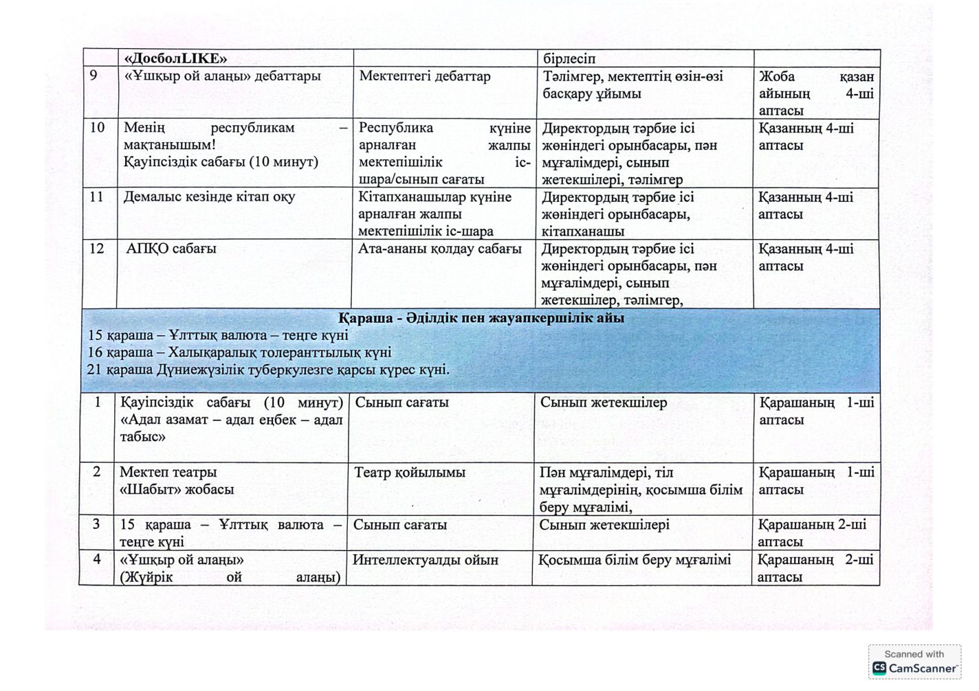 "Адал азамат" бірыңғай тәрбие бағдарламасын іске асыру бойынша 2025-2026 оқу жылына арналған тәрбие жұмысының жоспары