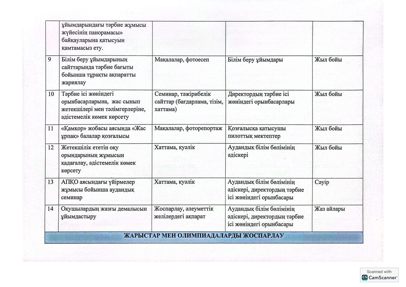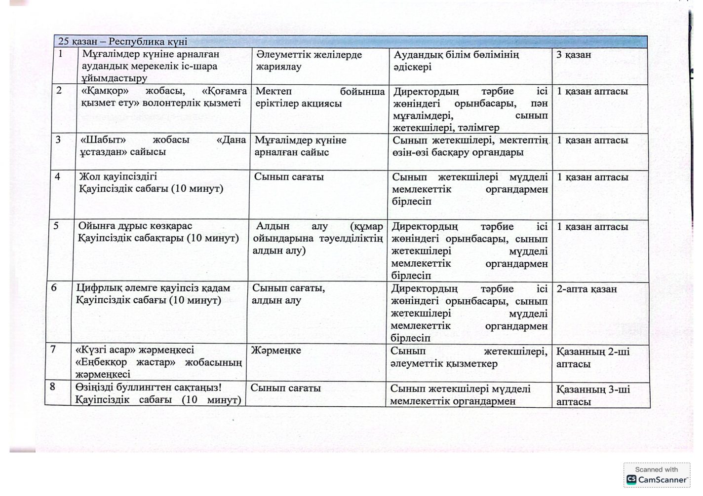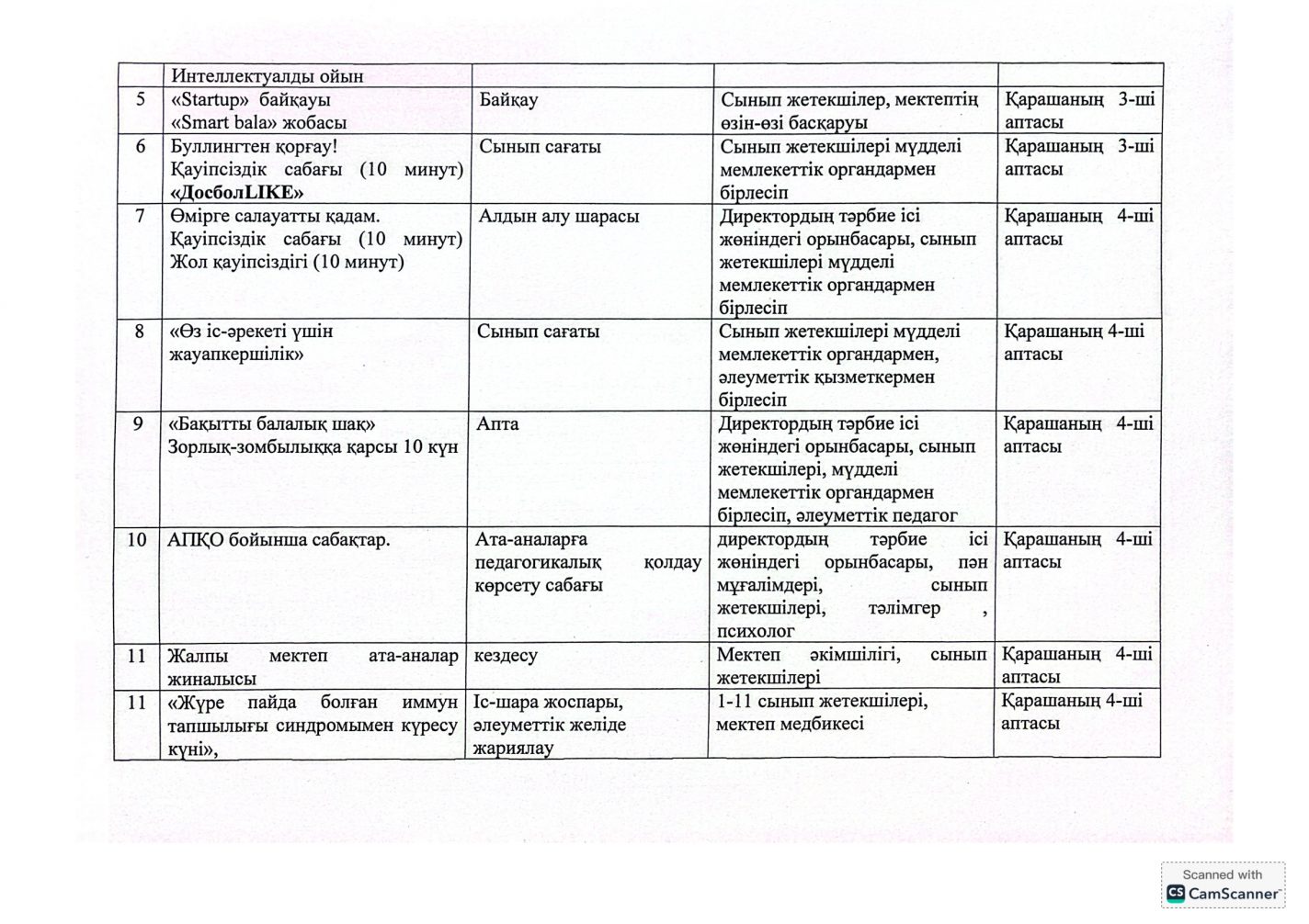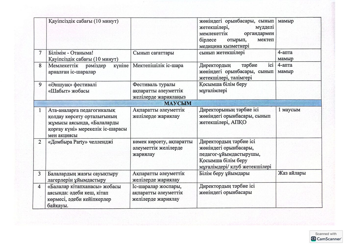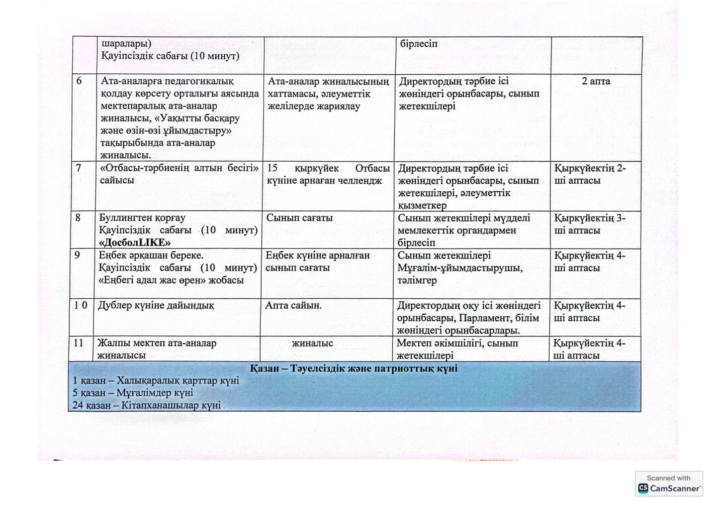 "Адал азамат" бірыңғай тәрбие бағдарламасын іске асыру бойынша 2025-2026 оқу жылына арналған тәрбие жұмысының жоспары