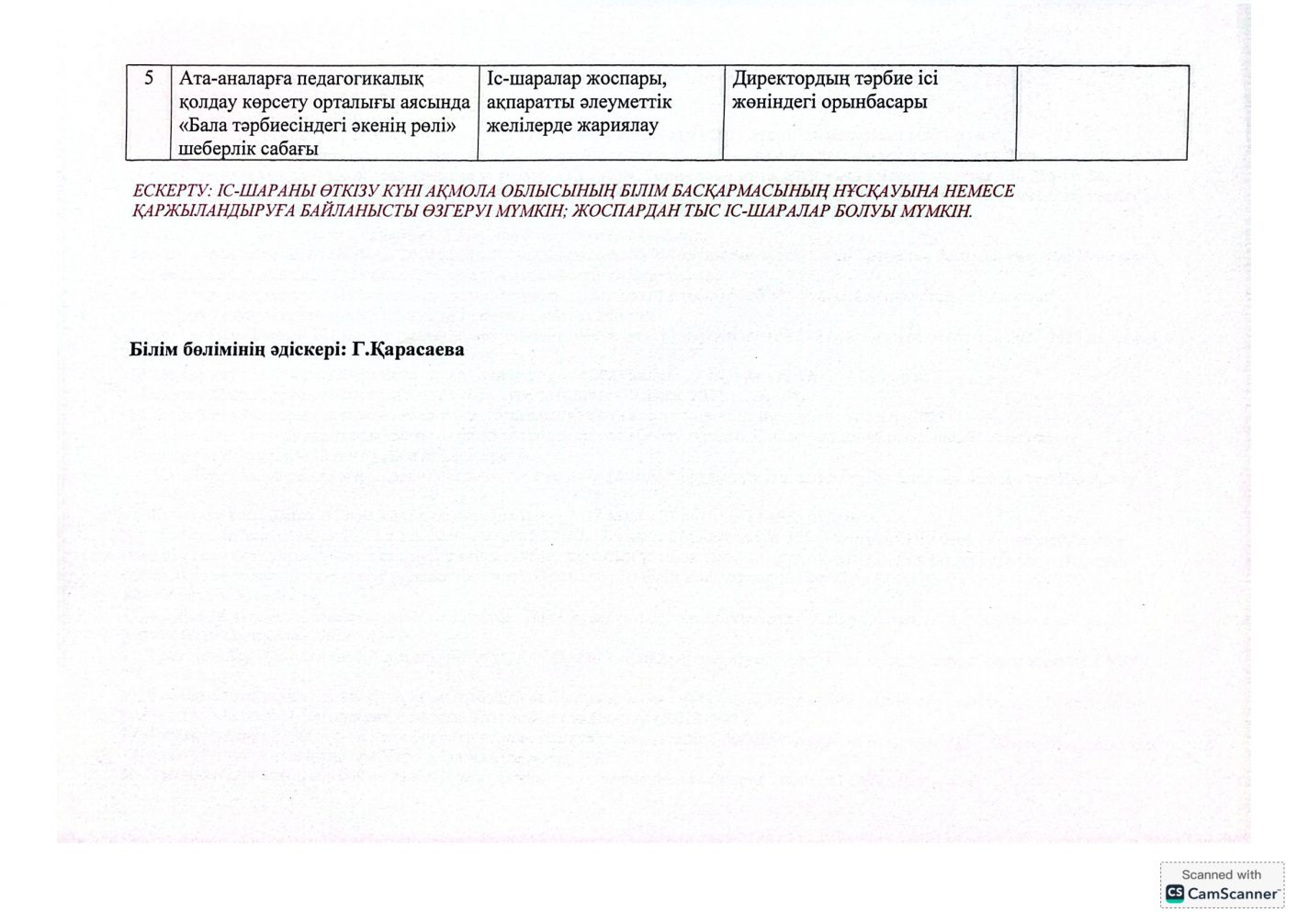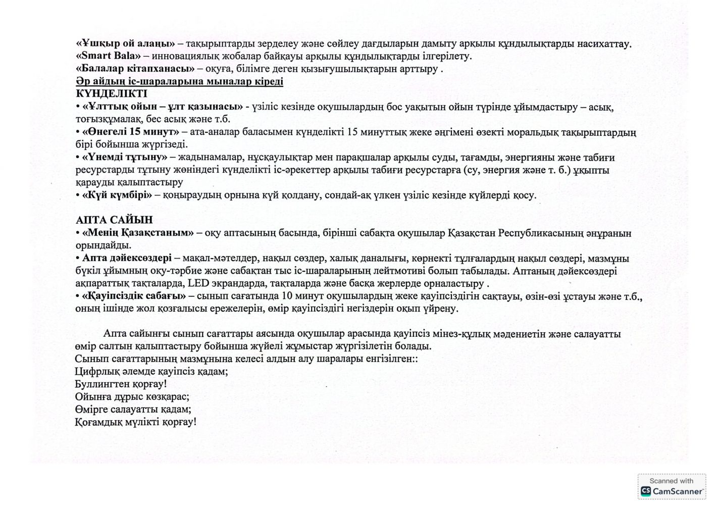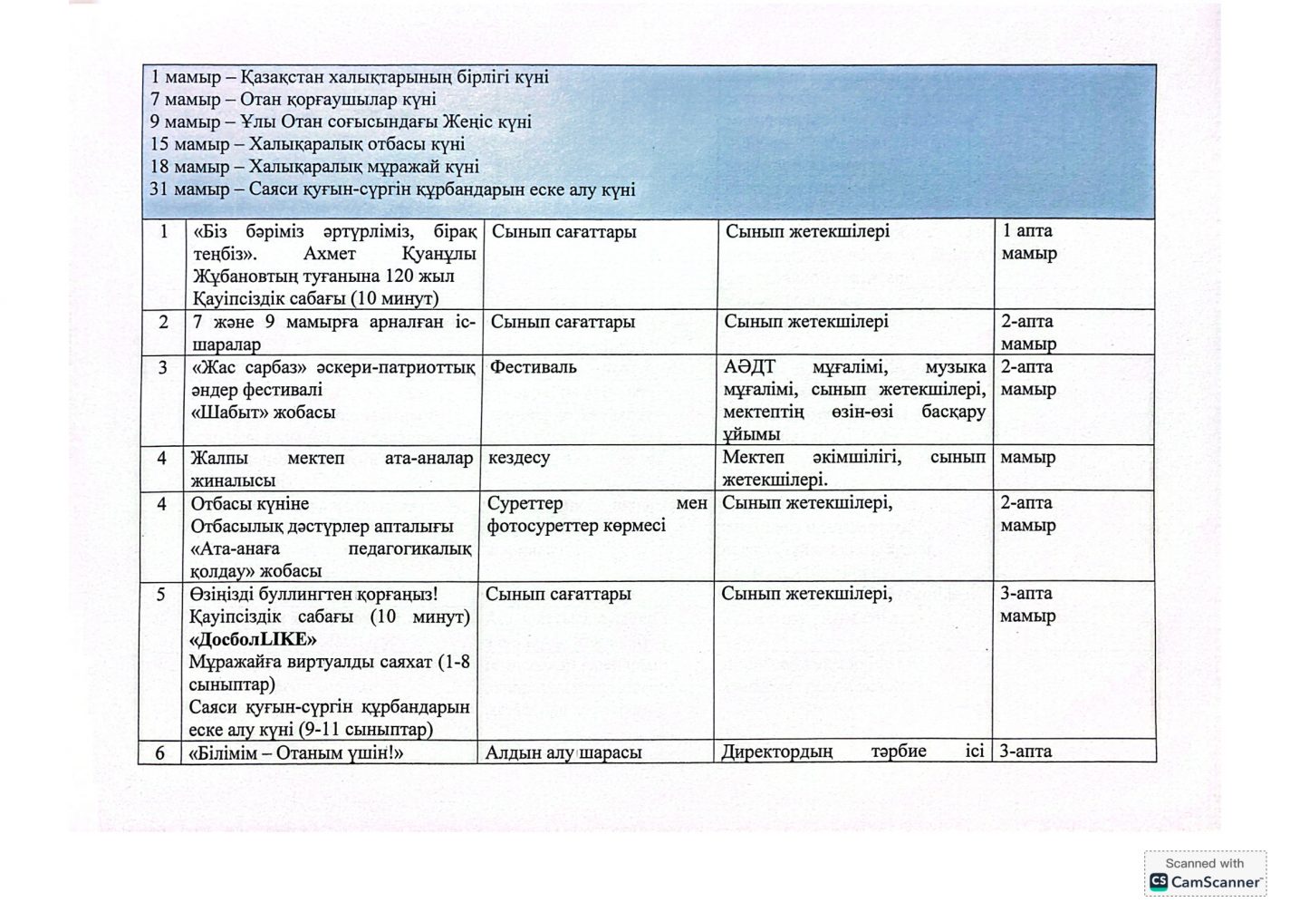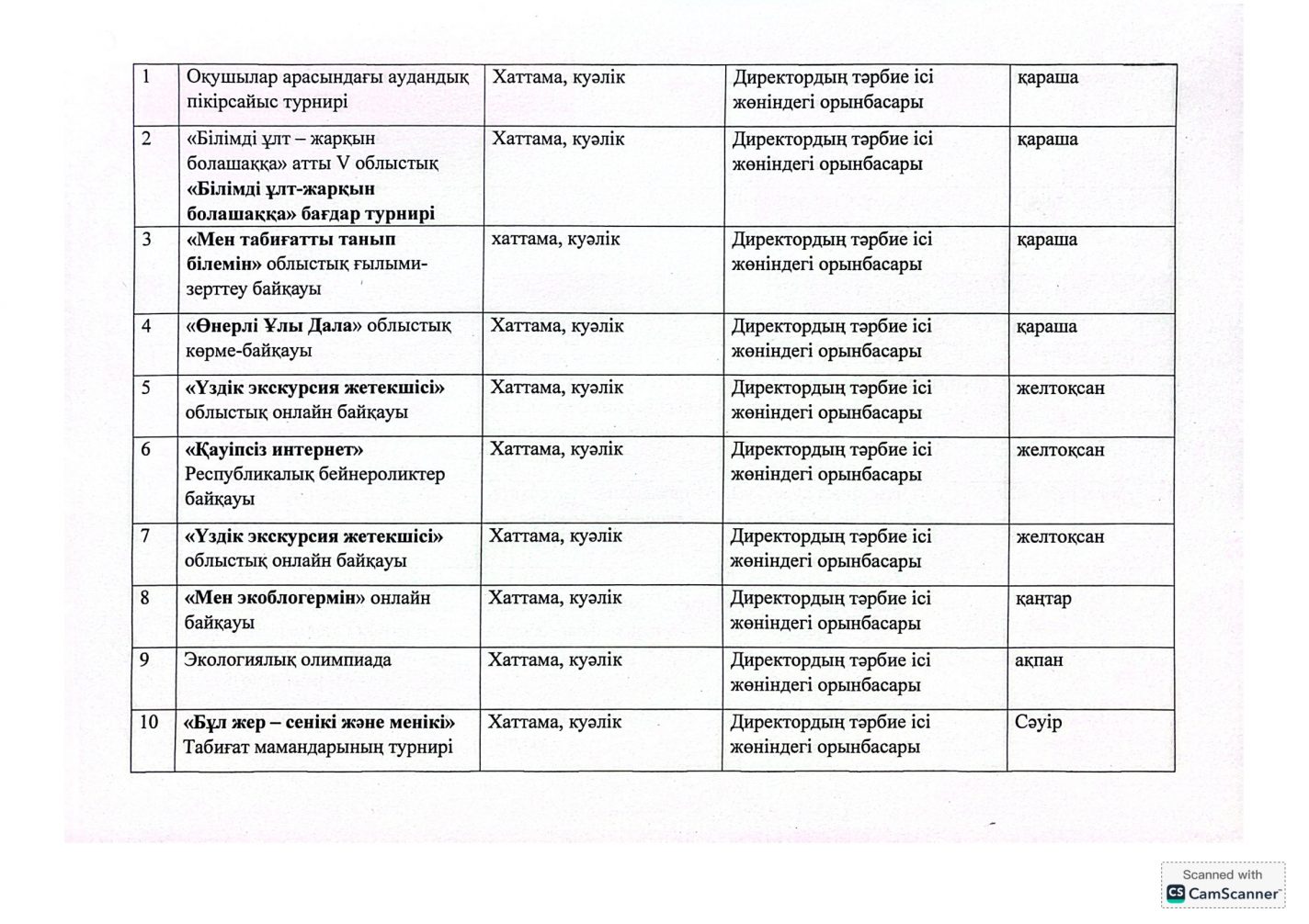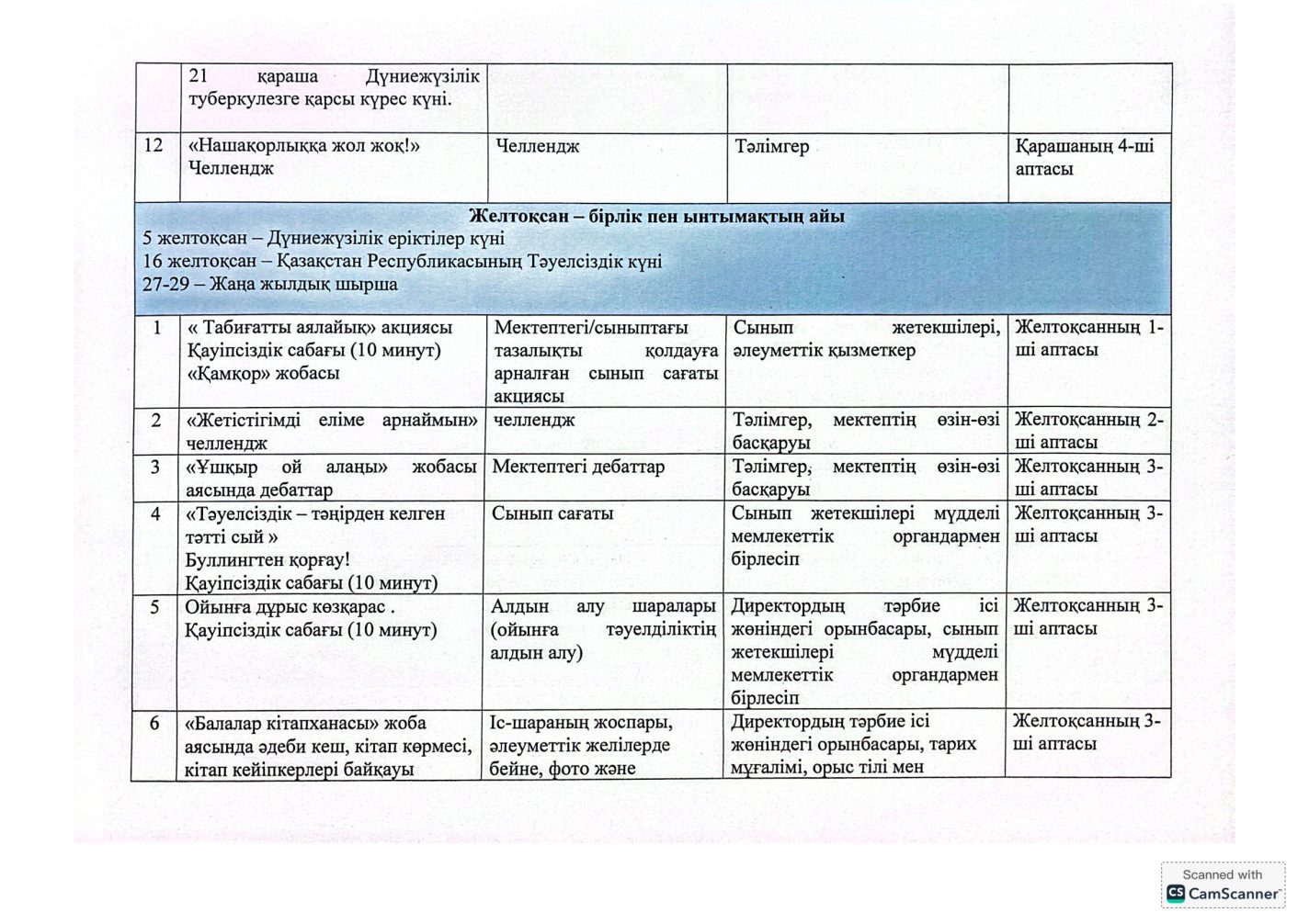 "Адал азамат" бірыңғай тәрбие бағдарламасын іске асыру бойынша 2025-2026 оқу жылына арналған тәрбие жұмысының жоспары