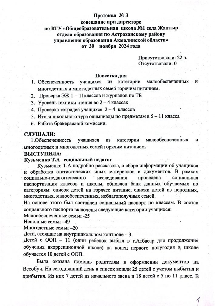Коммунальное государственное учреждение «Общеобразовательная школа №1 села Жалтыр отдела образования по Астраханскому району управления образования Акмолинской области»