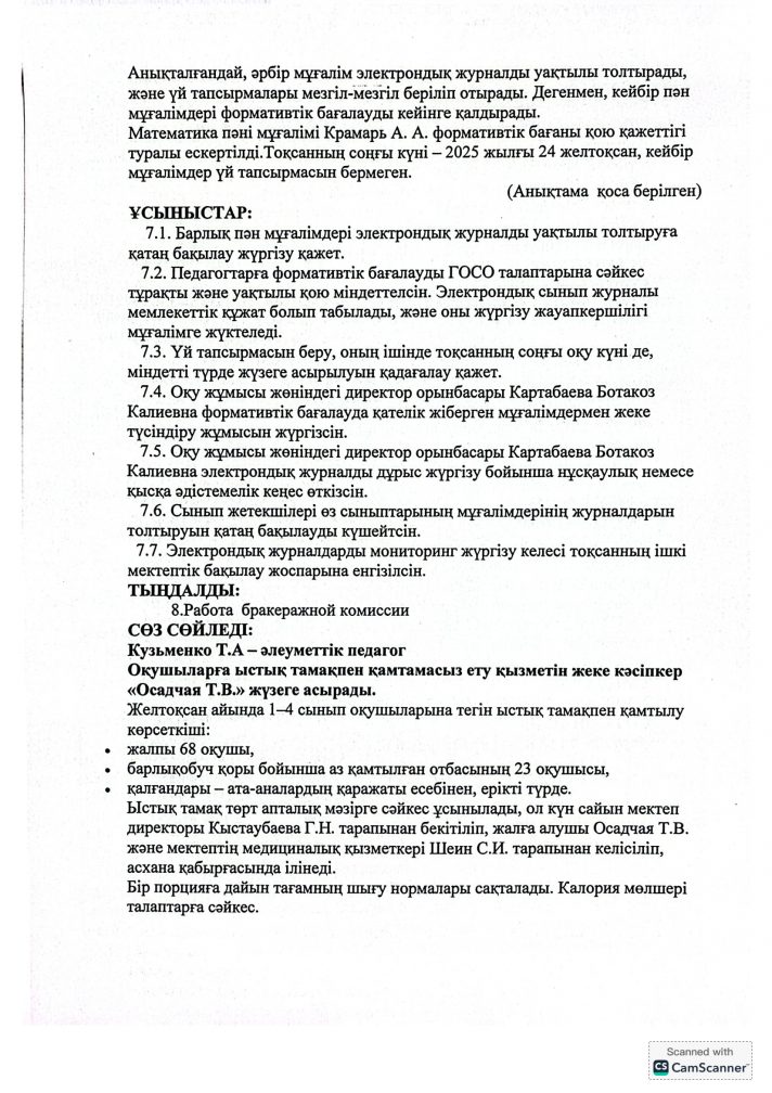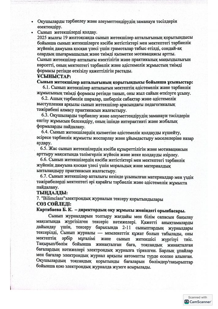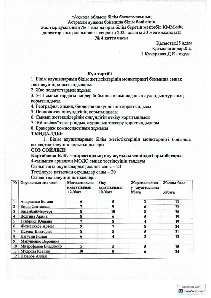 2025-2026 оқу жылына арналған №4 директор жанындағы кеңестің хаттамасы