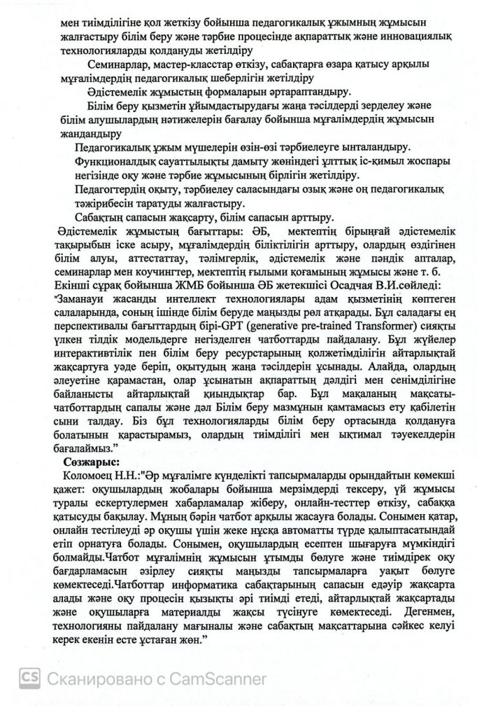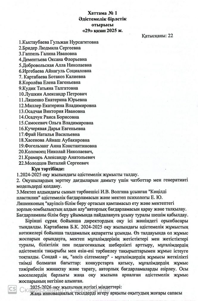 Әдістемелік кеңес отырысының №1 хаттамасы