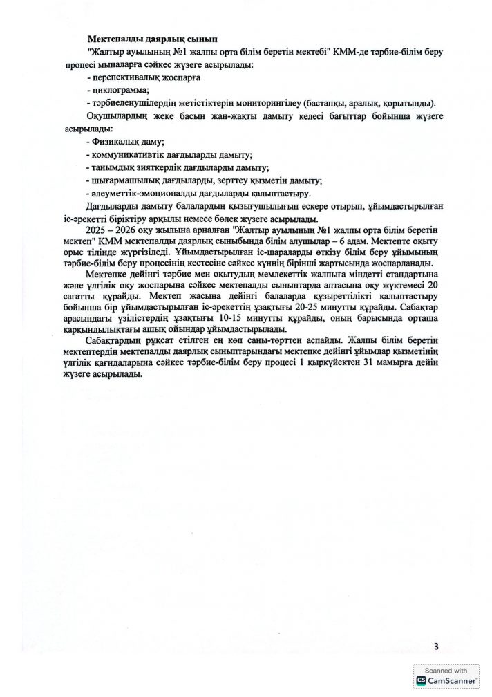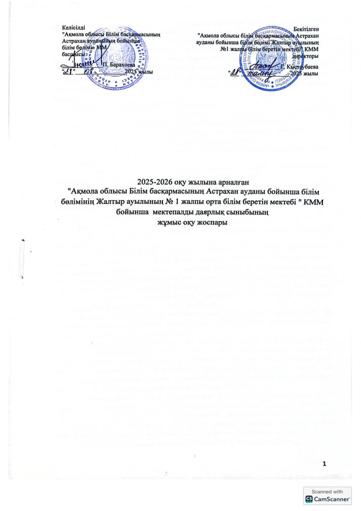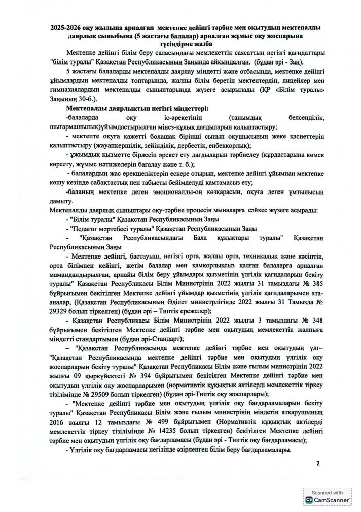 2025-2026 оқу жылына арналған мектепалды сыныптың жұмыс жоспары