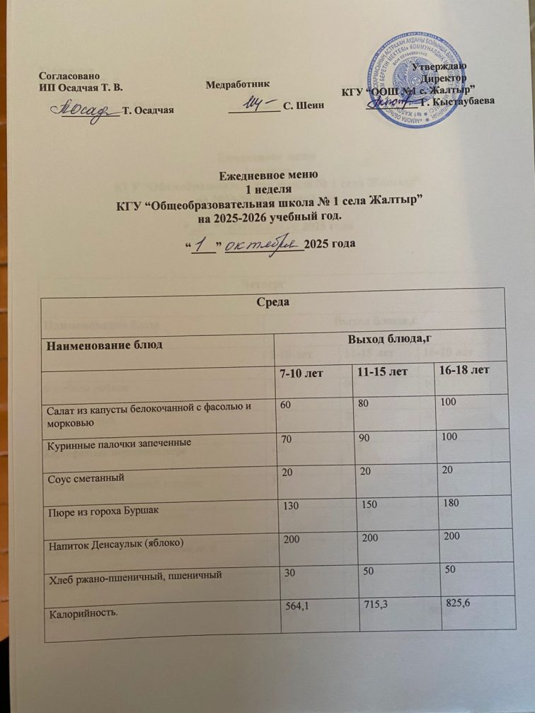 Коммунальное государственное учреждение «Общеобразовательная школа №1 села Жалтыр отдела образования по Астраханскому району управления образования Акмолинской области»