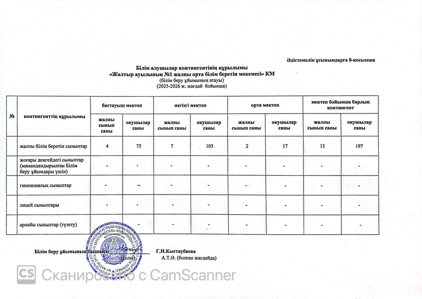 2025-2026 оқу жылындағы жағдай бойынша білім алушылар контингентінің құрылымы 8-қосымша
